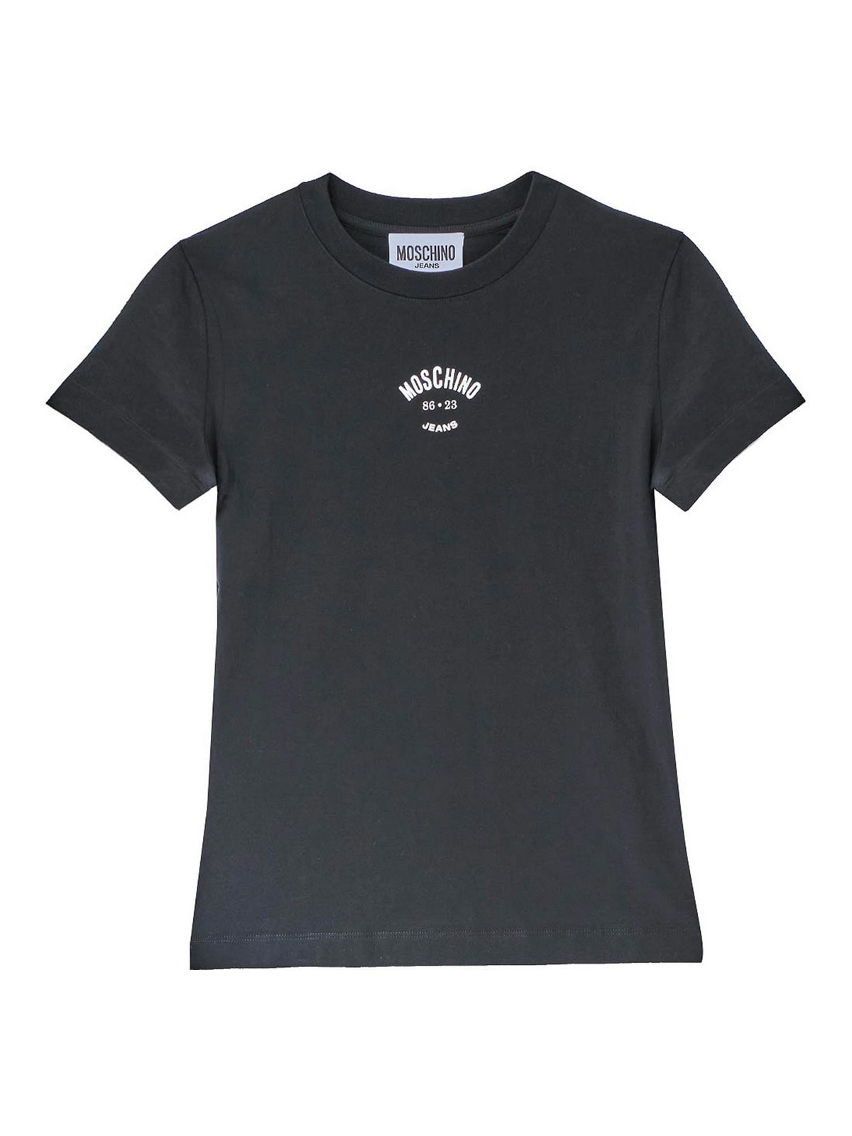 Nueva camiseta con logo en negro. Camiseta de algodón Moschino con estampado del logotipo en contraste en la parte delantera y cuello redondo acanalado. Mangas cortas, cuello redondo, logotipo estampado en contraste, corte regular. Color: negro. 100% algodón. Hecho en Portugal.