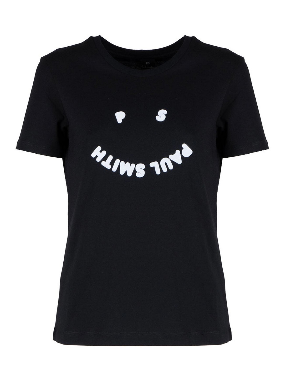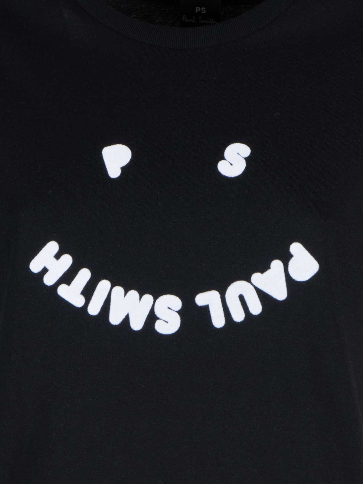 camiseta ps happy en negro, camiseta de cuello redondo con la icónica sonrisa PS en contraste en la parte delantera, corte clásico, color: negro, 100% algodón orgánico.