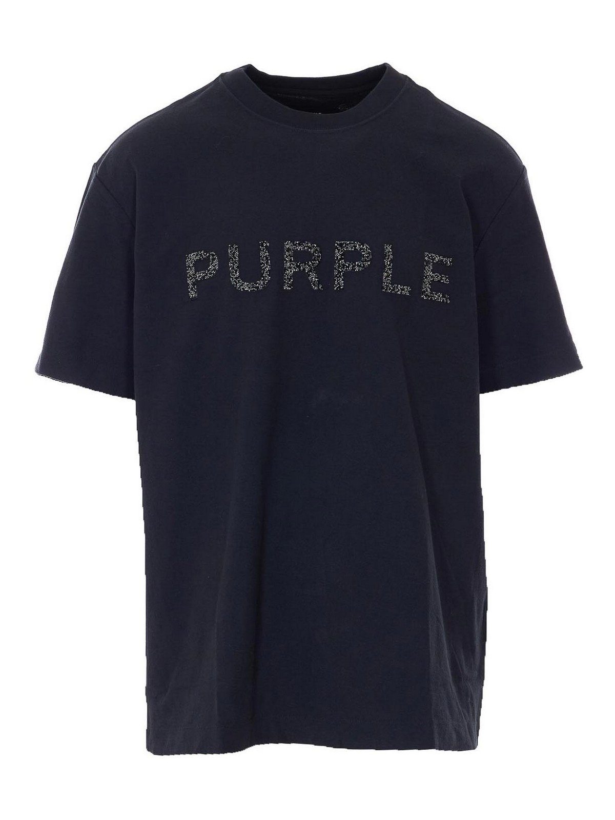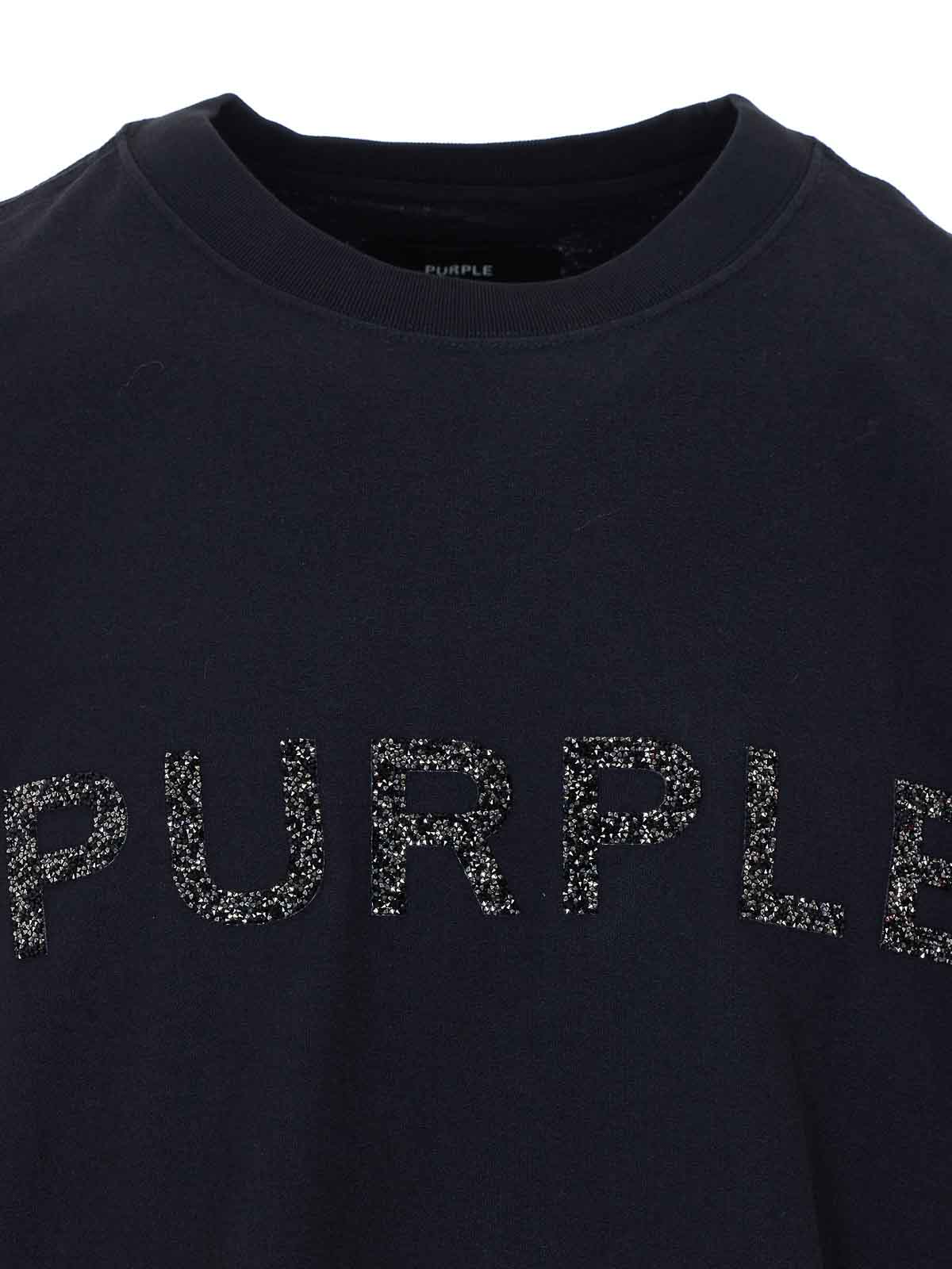 Camiseta negra morada, cuello redondo, logotipo con cristales en la parte delantera