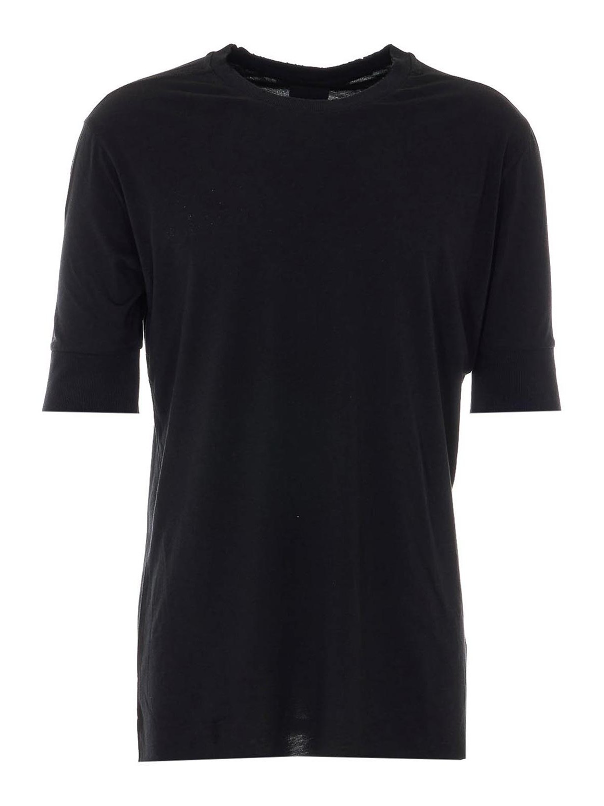 Camiseta negra de Thom krom, cuello redondo, efecto desgastado