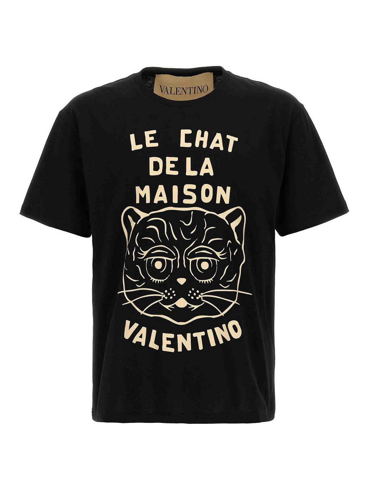 Camiseta de algodón con estampado frontal «le chat de la maison», cuello redondo y manga corta.