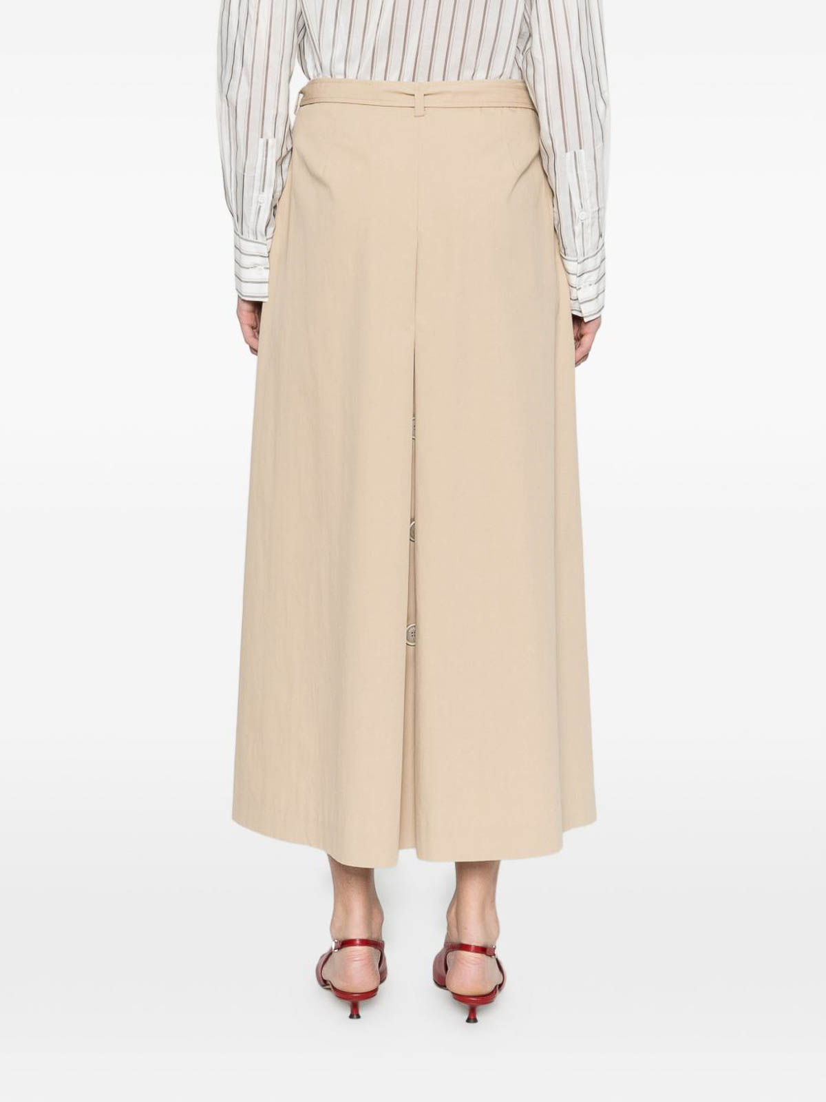 Falda larga beige de peserico, con hebilla en la cintura, elegante y versátil. Perfecta para atuendos formales y sofisticados, confeccionada con tela de alta calidad con un diseño refinado que realza la silueta.