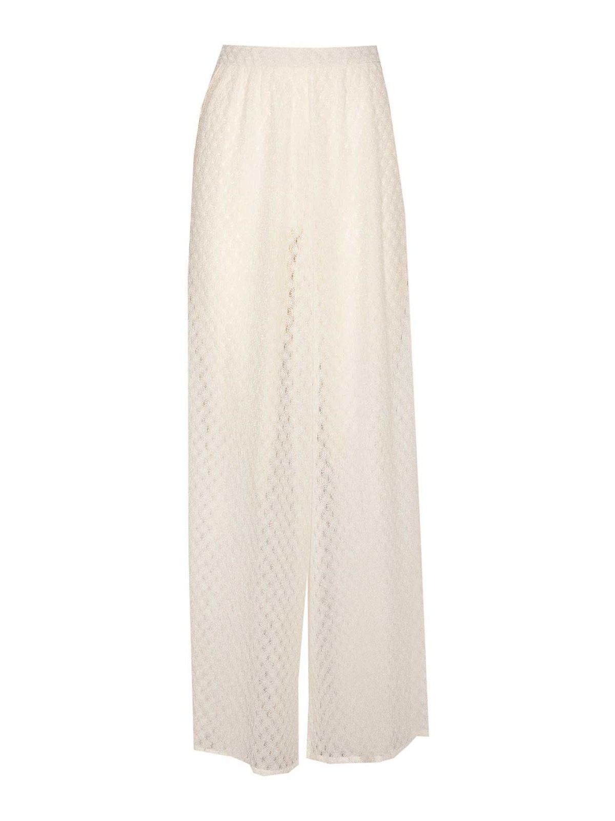 Pantalones Missoni de viscosa blancos con acabado lame' raschel, modelo alto, pernera ancha