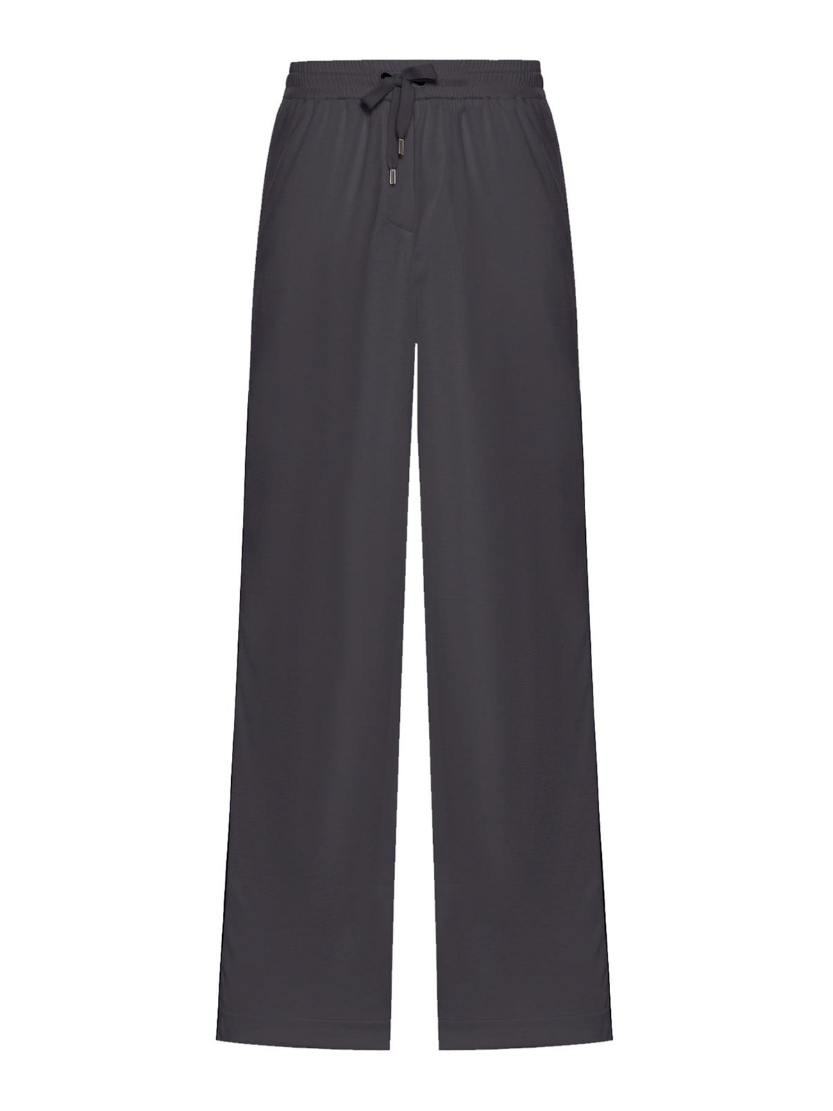 cintura elástica, cierre de cordón ajustable con tachuelas metálicas, bolsillos laterales insertados, bolsillos traseros ribeteados, pernera ancha, longitud regular con dobladillo limpio, ajuste holgado, mezcla de algodón y seda, color: antracita