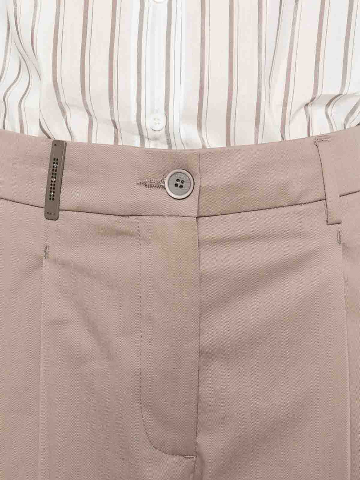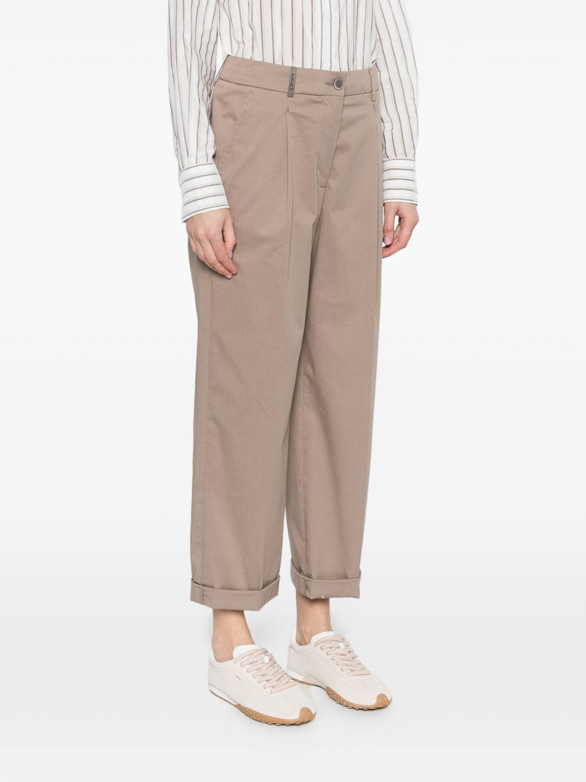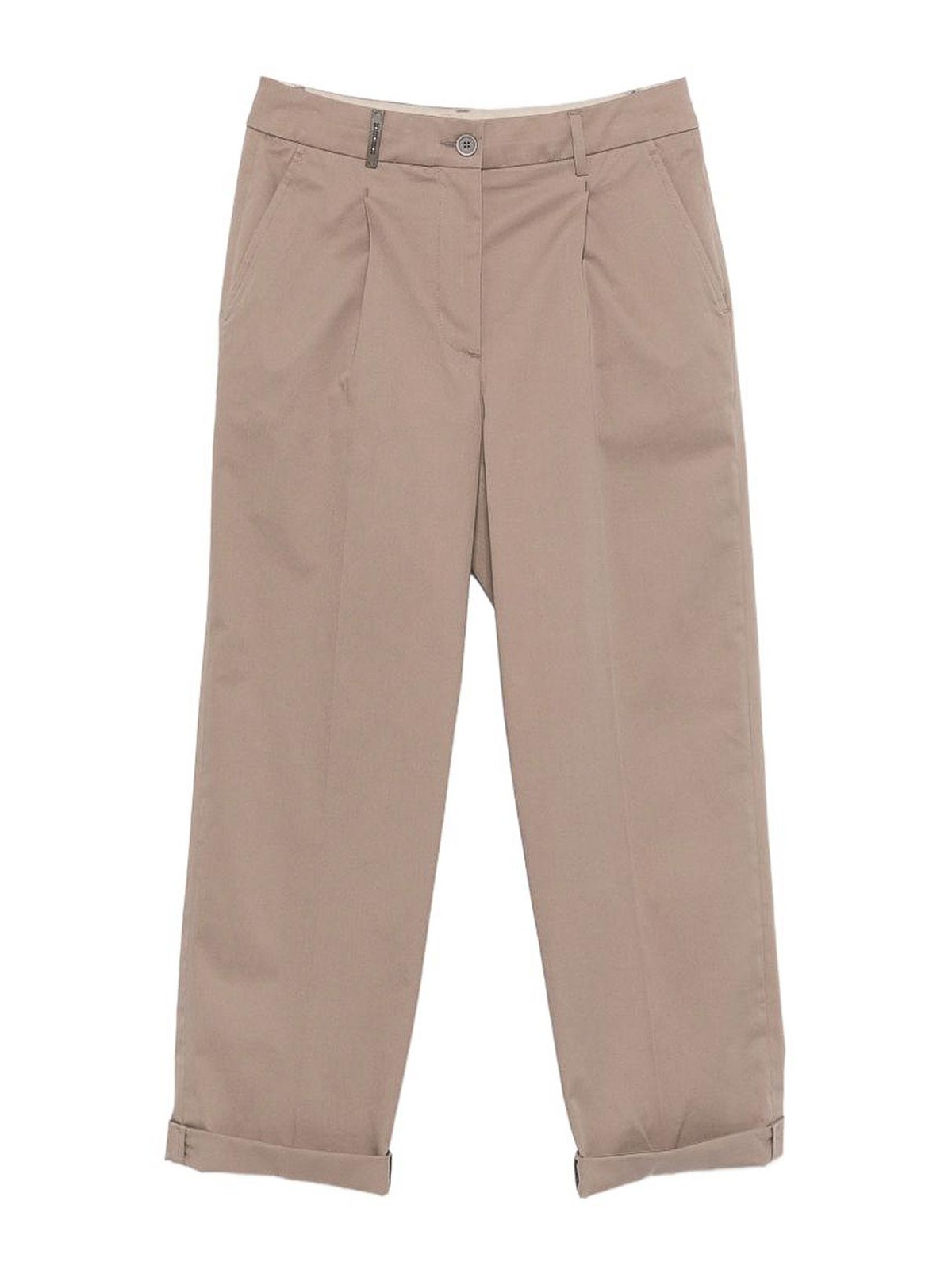 Pantalones beige con pliegues y puños en los tobillos de peserico, elegantes y femeninos, perfectos para atuendos formales y sofisticados. Corte entallado con tejido de alta calidad para un estilo refinado y contemporáneo.