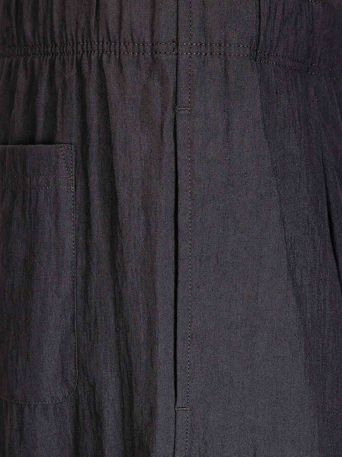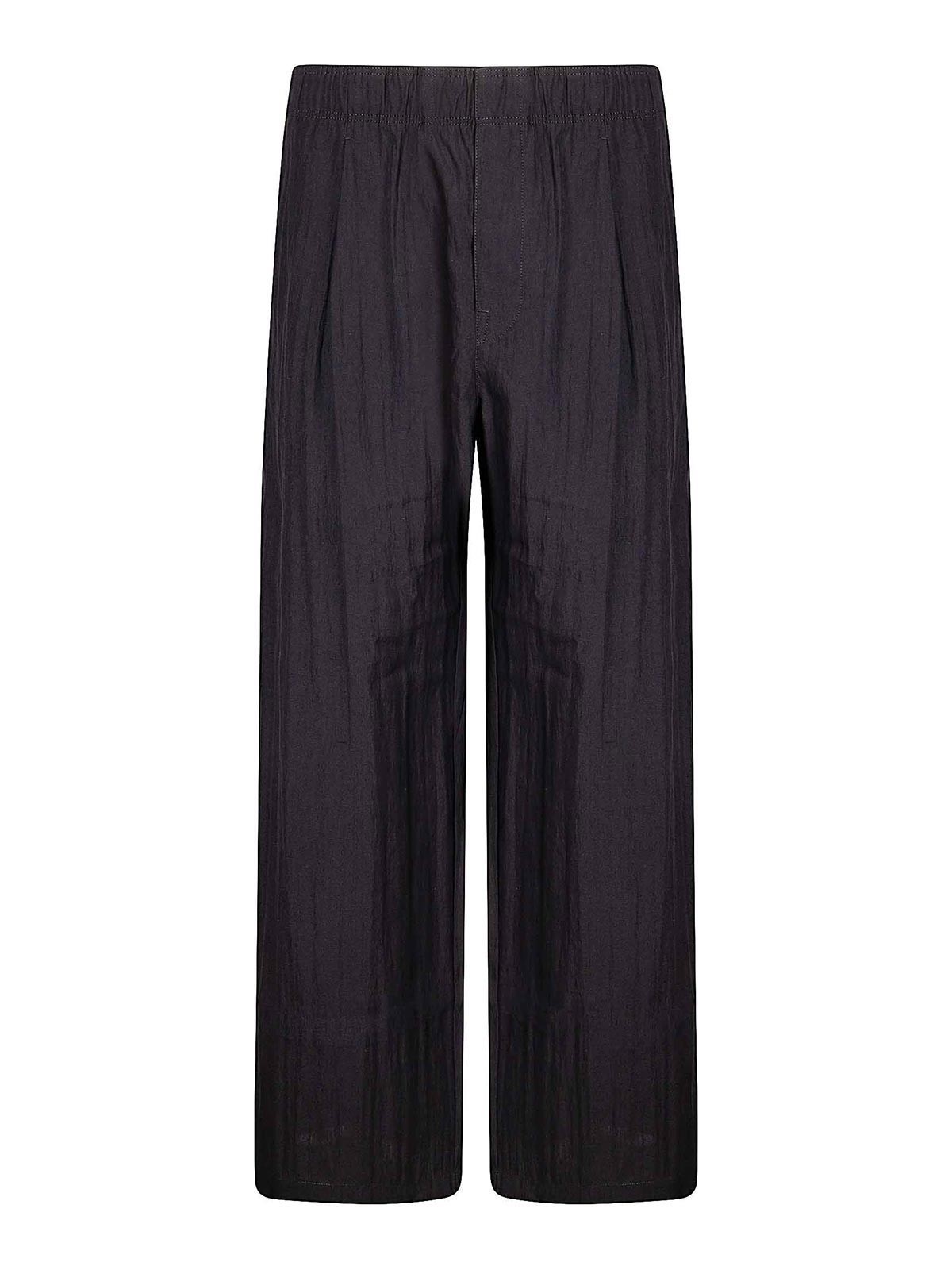 Pantalones de lino de pernera recta, cintura elástica, tejido texturizado, bolsillos laterales.
