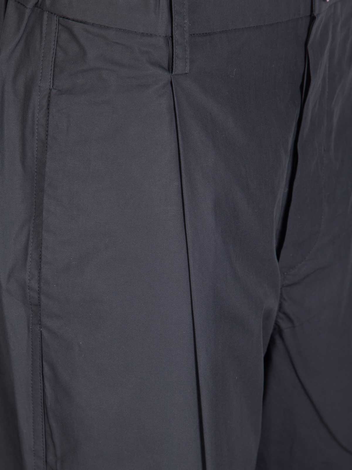 Pantalones con cintura elástica, dos bolsillos ribeteados, cierre con botones, pliegues, dobladillo recto, corte regular.