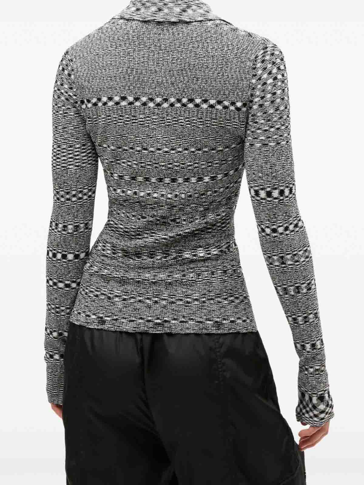 Botón de manga larga con estampado de cuadros con efecto de tinte espacial en blanco y negro de diseñador