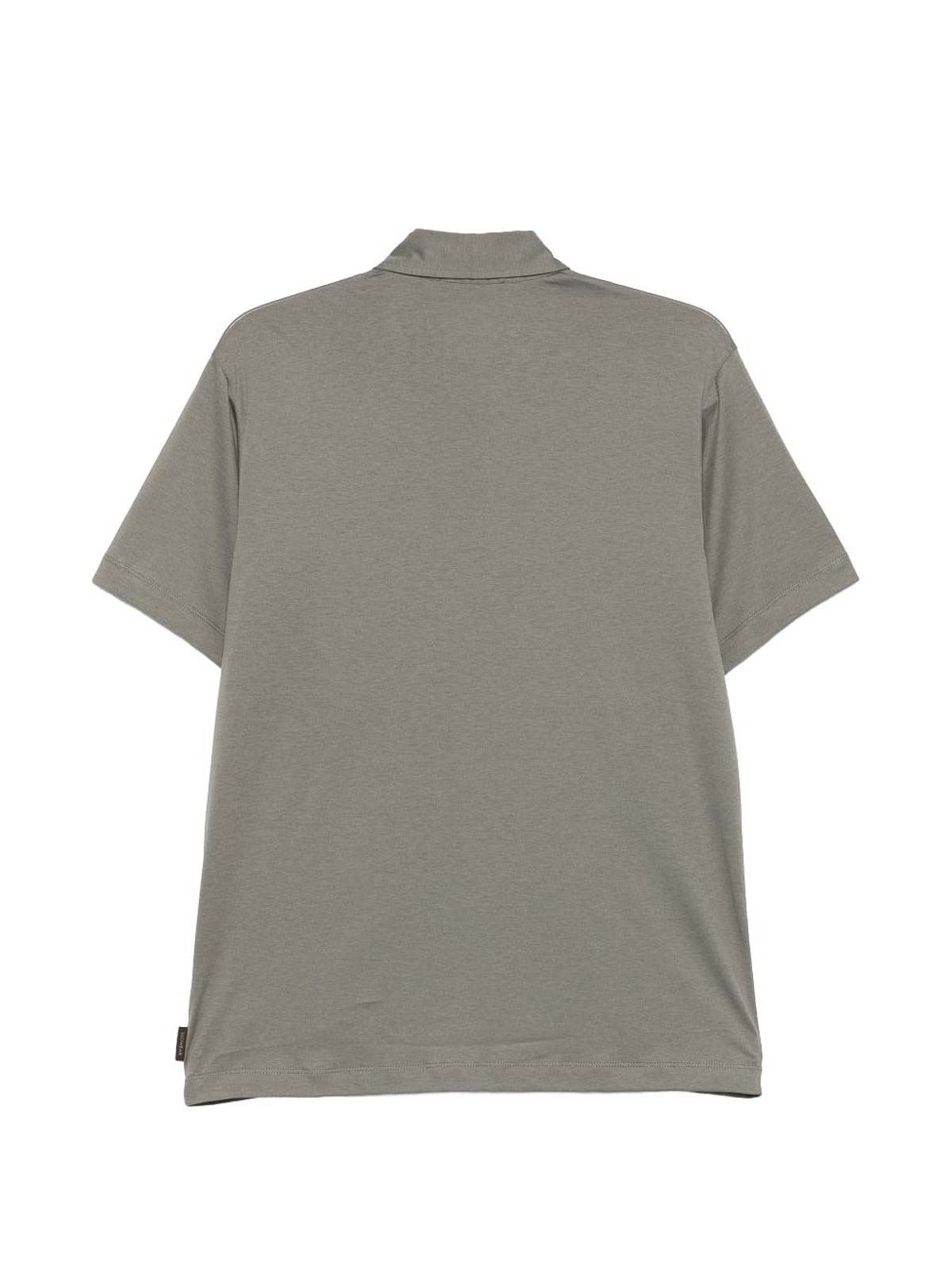 Cuenta con cierre de botones grises, mangas cortas, composición del cuello: 70% algodón, 30% seda.