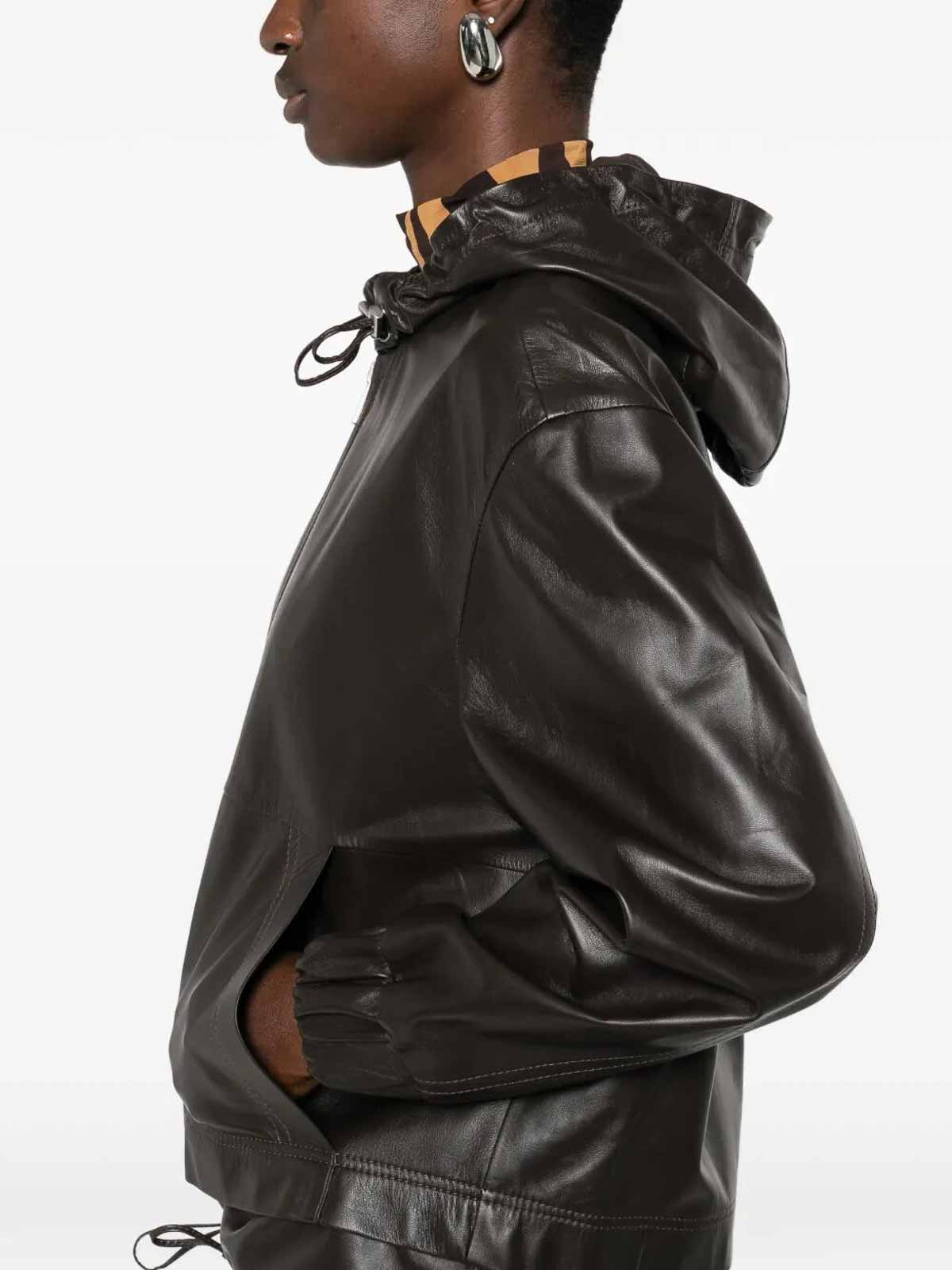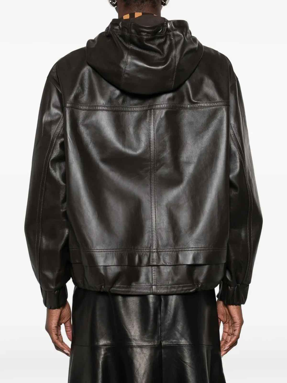 Chaqueta de piel con capucha, que combina comodidad y elegancia urbana.