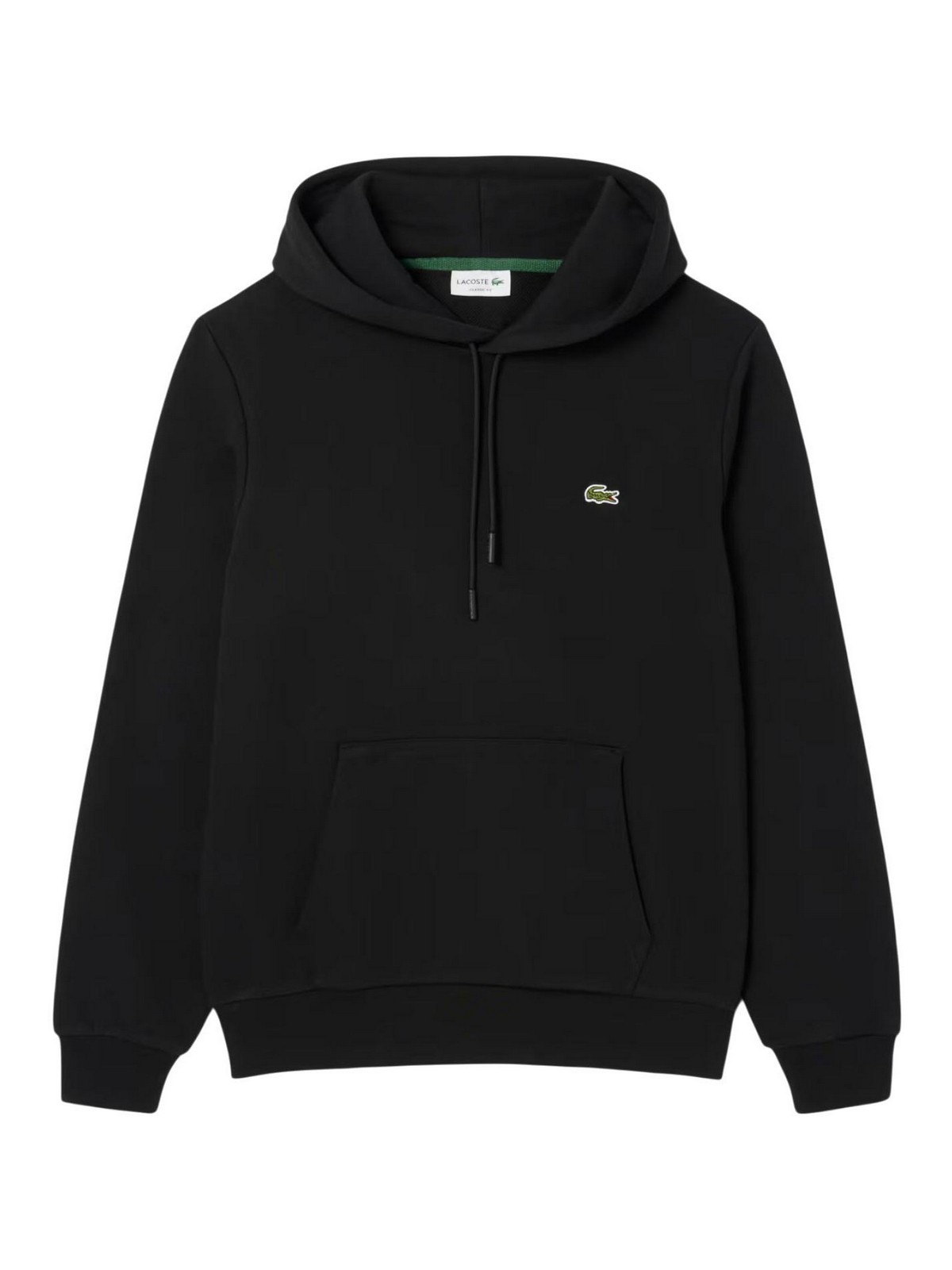 Sudadera con capucha Lacoste en algodón polar negro, interpretación esencial y atemporal de la sudadera con capucha exclusiva de Lacoste. Confeccionada en tejido polar de algodón, combina la comodidad diaria y un diseño minimalista. El corte clásico garantiza un ajuste natural, mientras que los detalles funcionales y el cocodrilo bordado definen una estética casual y elegante en consonancia con la herencia deportiva de la marca. Tejido de sudadera de algodón orgánico, corte clásico, capucha integrada, bolsillo canguro, cintura elástica acanalada puños y puños, bordados de cocodrilo y cosidos en el pecho, composición, tejido principal: 100% algodón, borde acanalado: 99% algodón, 1% elastano, cuidado de la ropa, lavar a máquina a un máximo de 30 °C en un ciclo normal, no usar lejía, no secar en secadora, planchar a temperatura media (máximo 150 °C), no lavar en seco y secar en plano