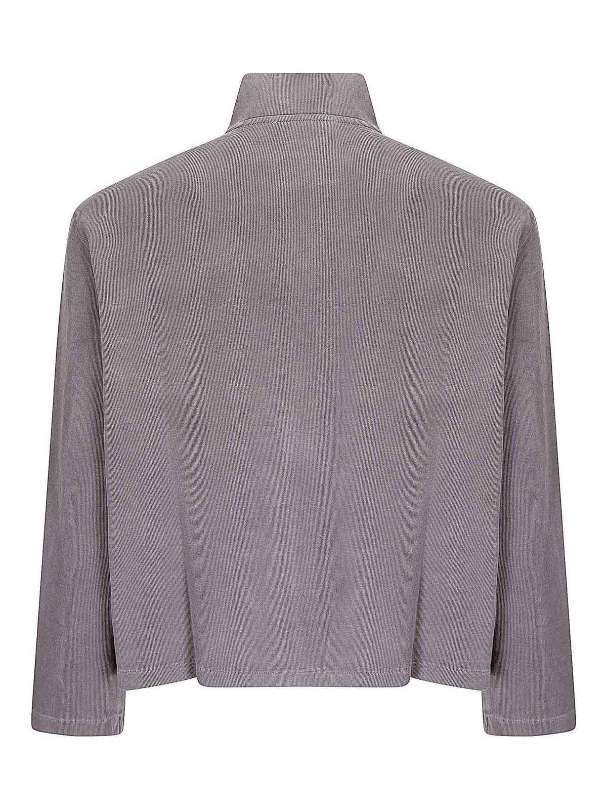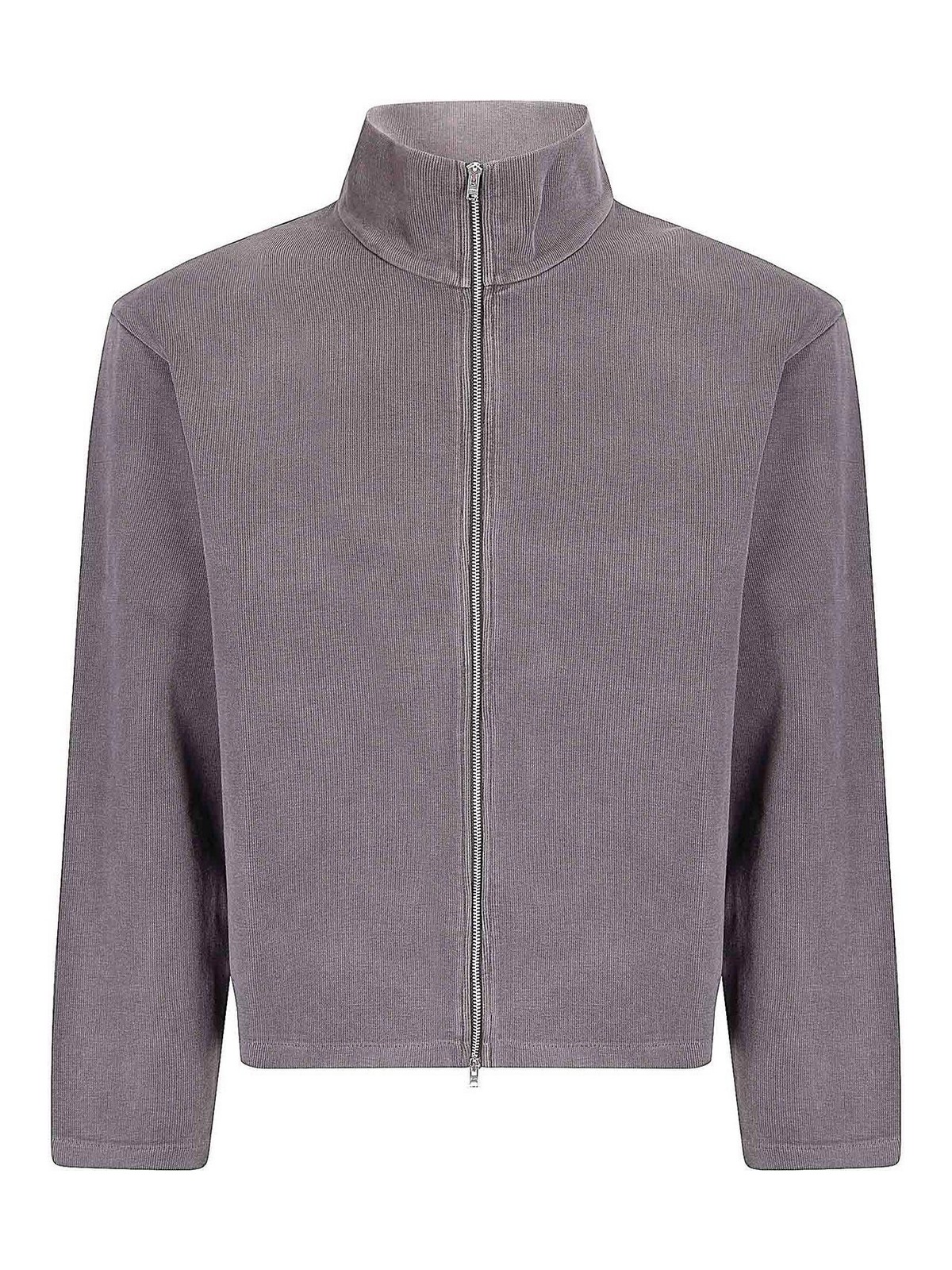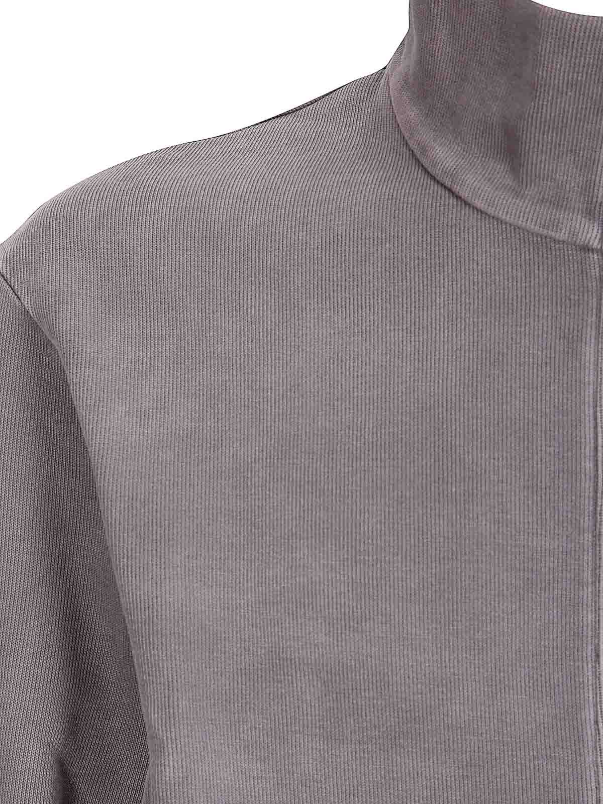 Sudadera con cremallera completa de algodón acanalado, ajuste cómodo, corte regular, cuello alto, cierre con cremallera.