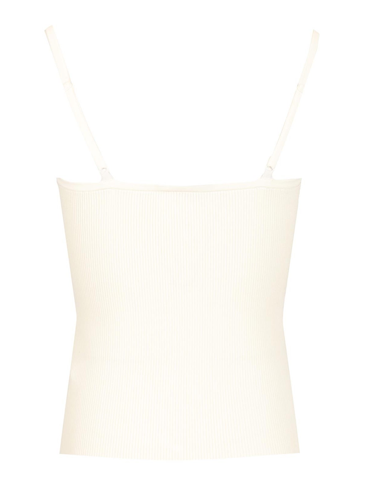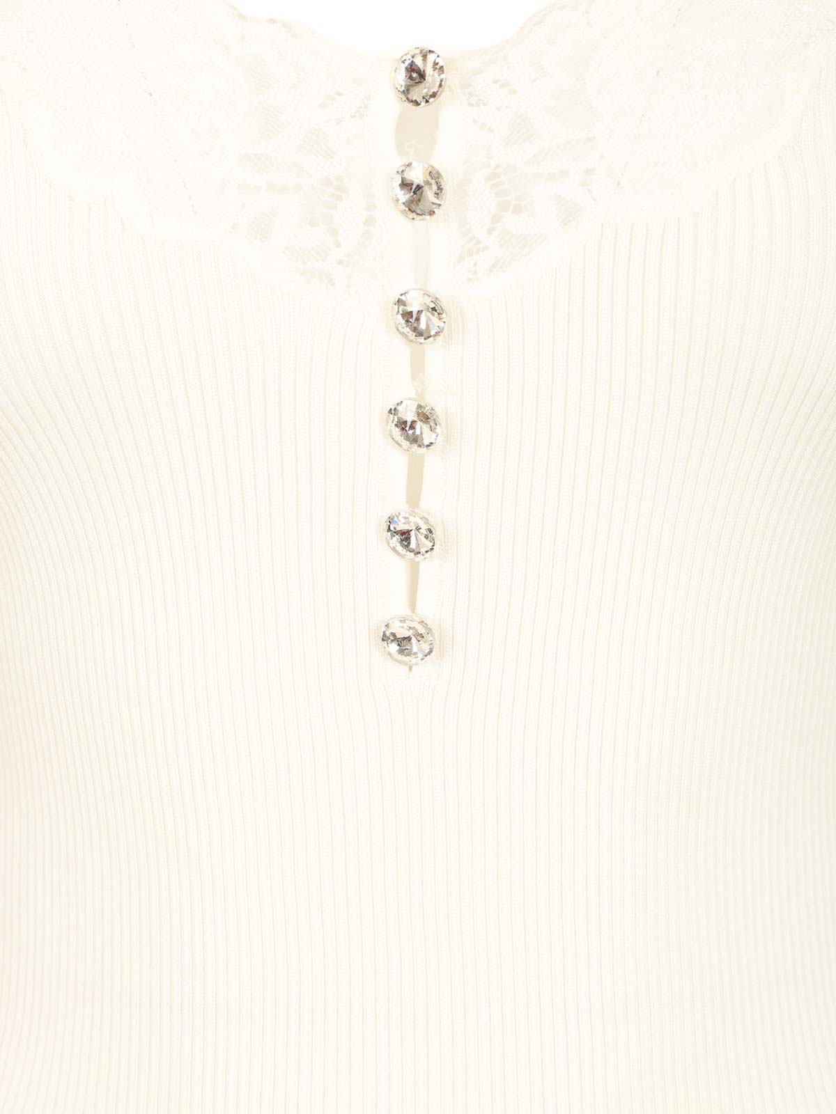 Top de punto acanalado con encaje autorretrato con un favorecedor botón en el cuello y tirantes finos ajustables