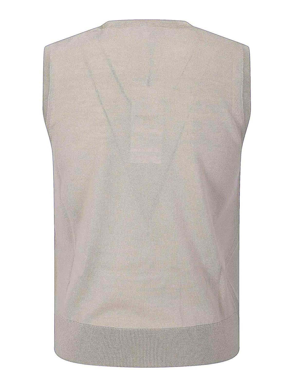 Chaleco sin mangas de lana muy ligera, cuello alto, corte ajustado, logotipo bordado en la parte delantera.