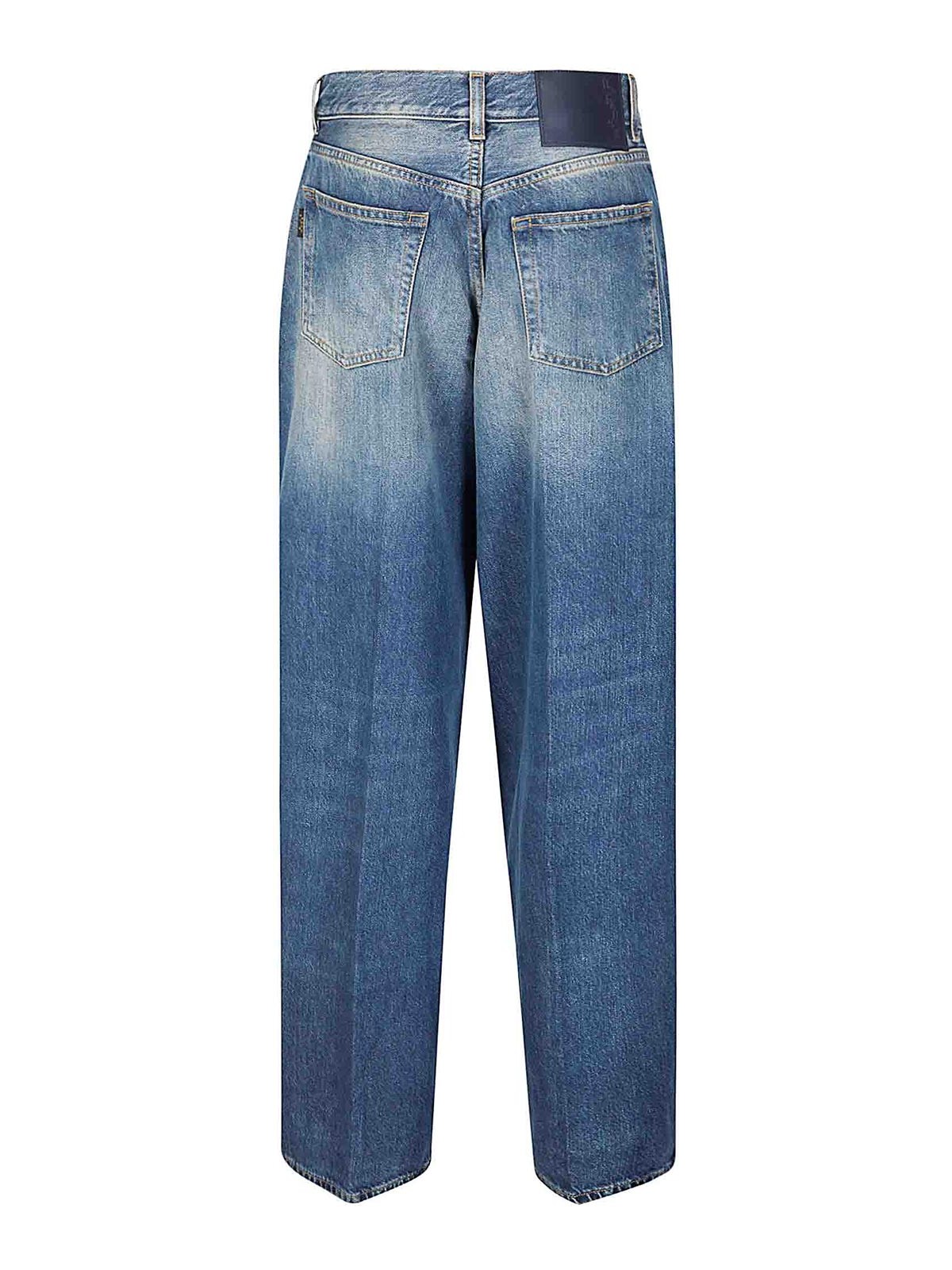 Vaqueros de mezcla de algodón, tela suave, lavado con ácido medio, cierre con botones, pernera recta y ancha.