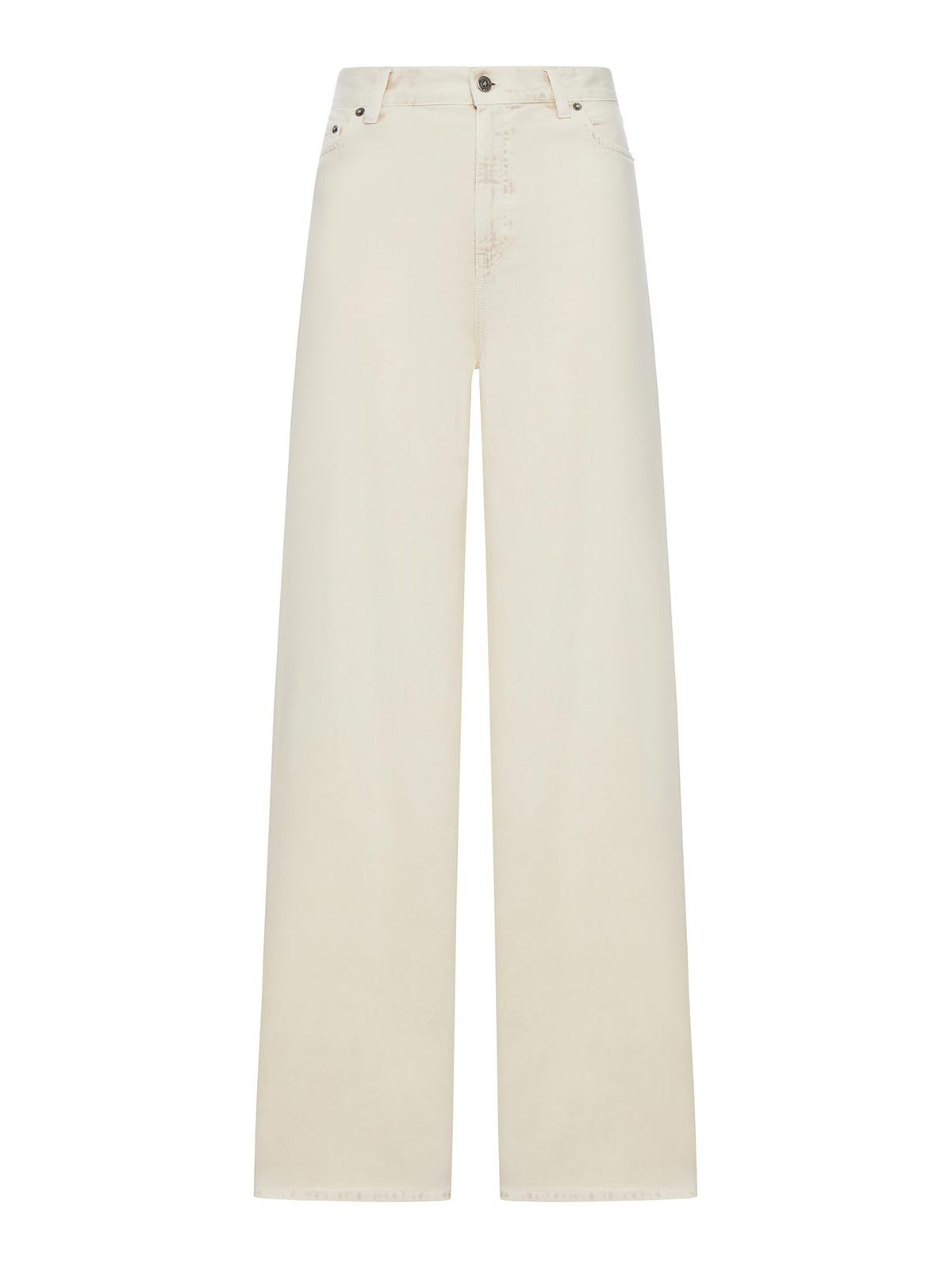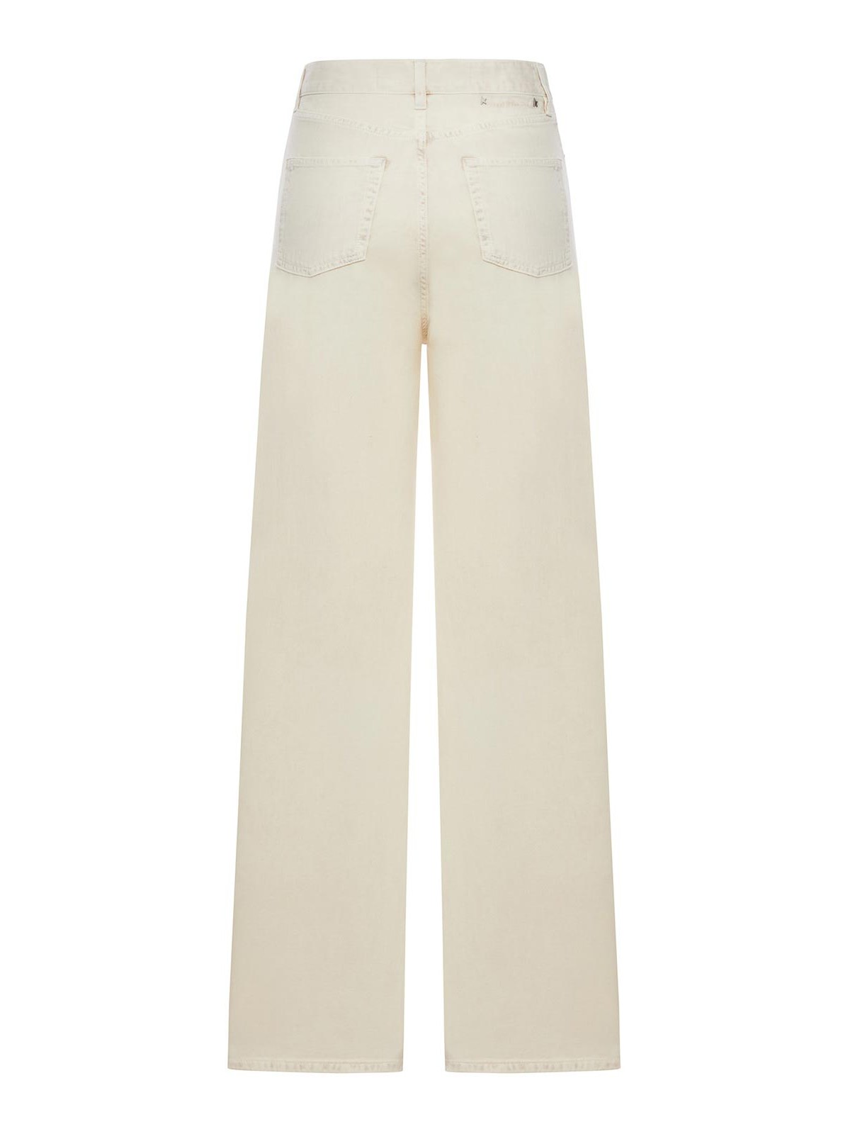 cierre frontal con botón con logotipo y cremallera oculta, trabillas para cinturón, estilo de cinco bolsillos con remaches metálicos, bolsillos traseros de parche, pernera ancha, dobladillo recto con costuras tono sobre tono, corte regular, 100% algodón, color: amarillo