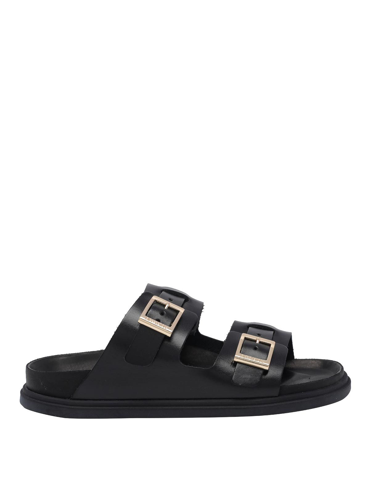 Sandalias Birkenstock negras de San Bartolomé, cierre con hebilla, sin cordones, punta redonda, parte superior de piel