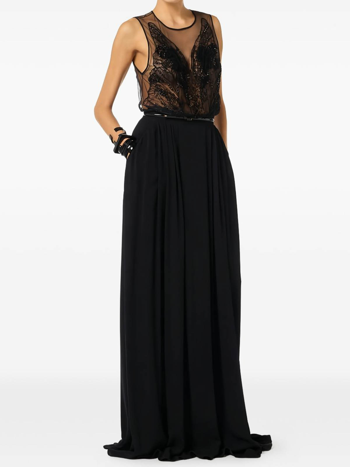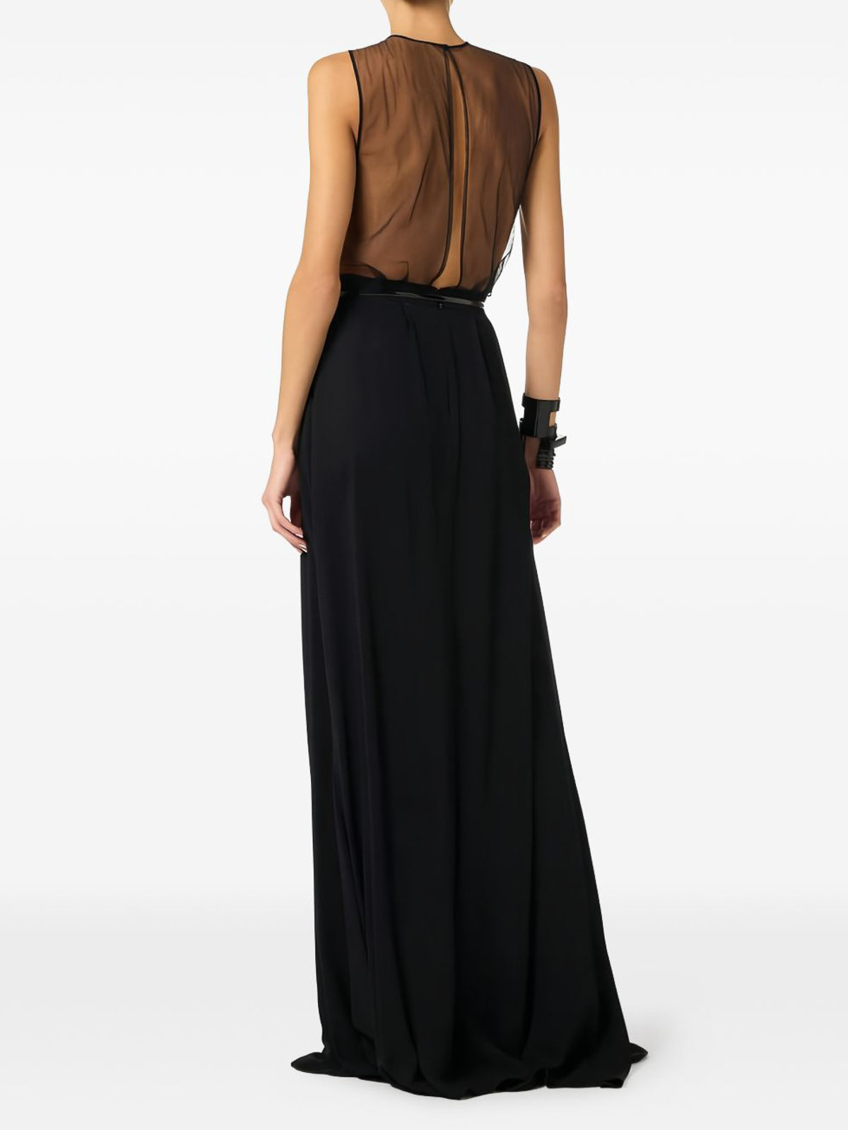 Vestido de alfombra roja de tul y georgette con cinturón a juego con cremallera invisible en la parte trasera