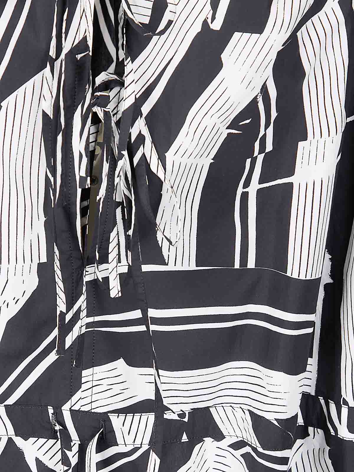 Vestido de algodón con estampado en contraste, ajuste cómodo, cintura con cordón, cordones y pliegues decorativos.