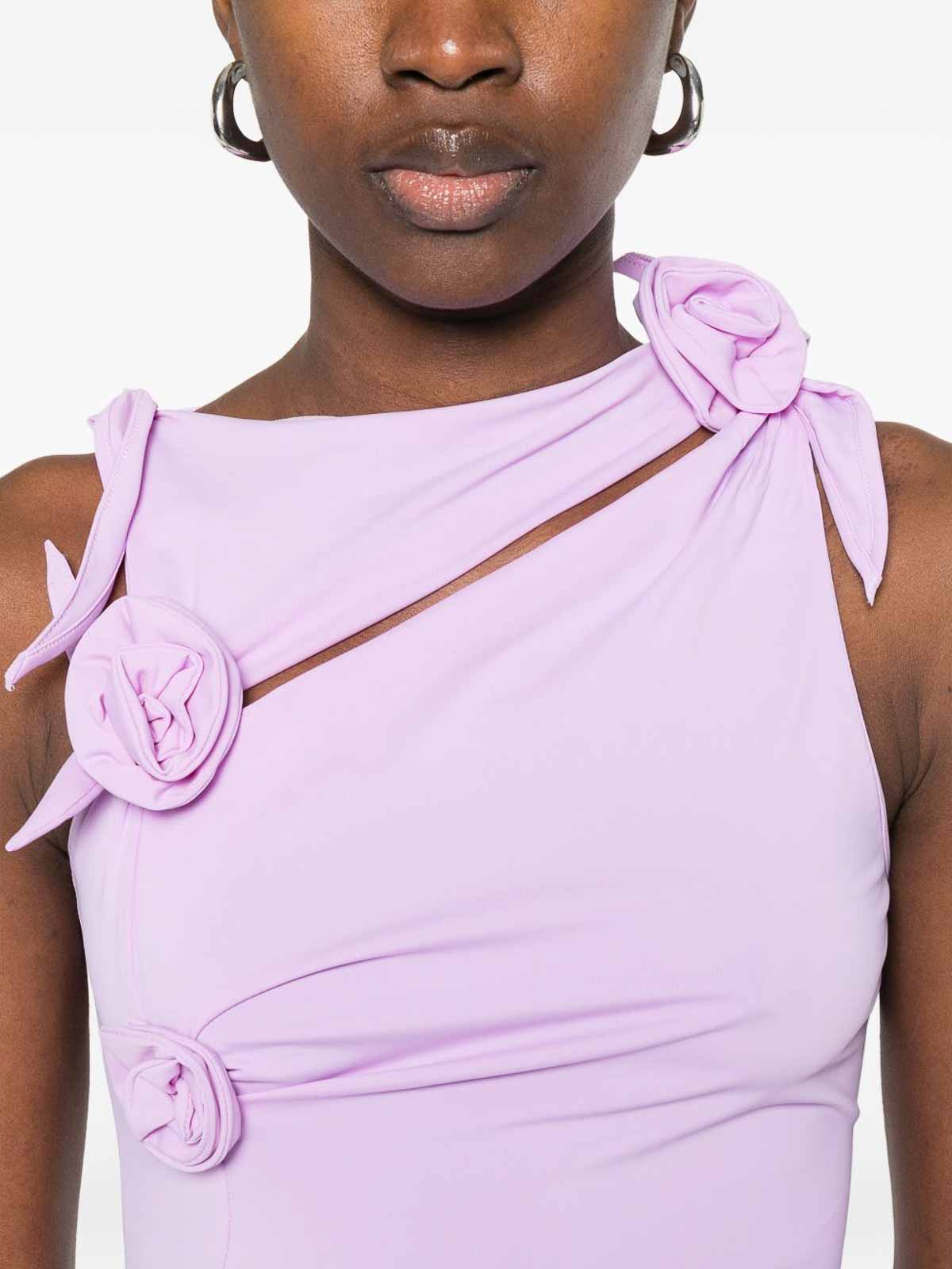 Vestido de coperni, confeccionado en tela rosa con apliques decorativos de rosas. Diseño sin mangas con una elegante abertura lateral que realza la silueta y añade movimiento. Femenino y contemporáneo, es perfecto para ocasiones especiales y looks sofisticados, ya que ofrece una calidad superior y un diseño distintivo de la marca.