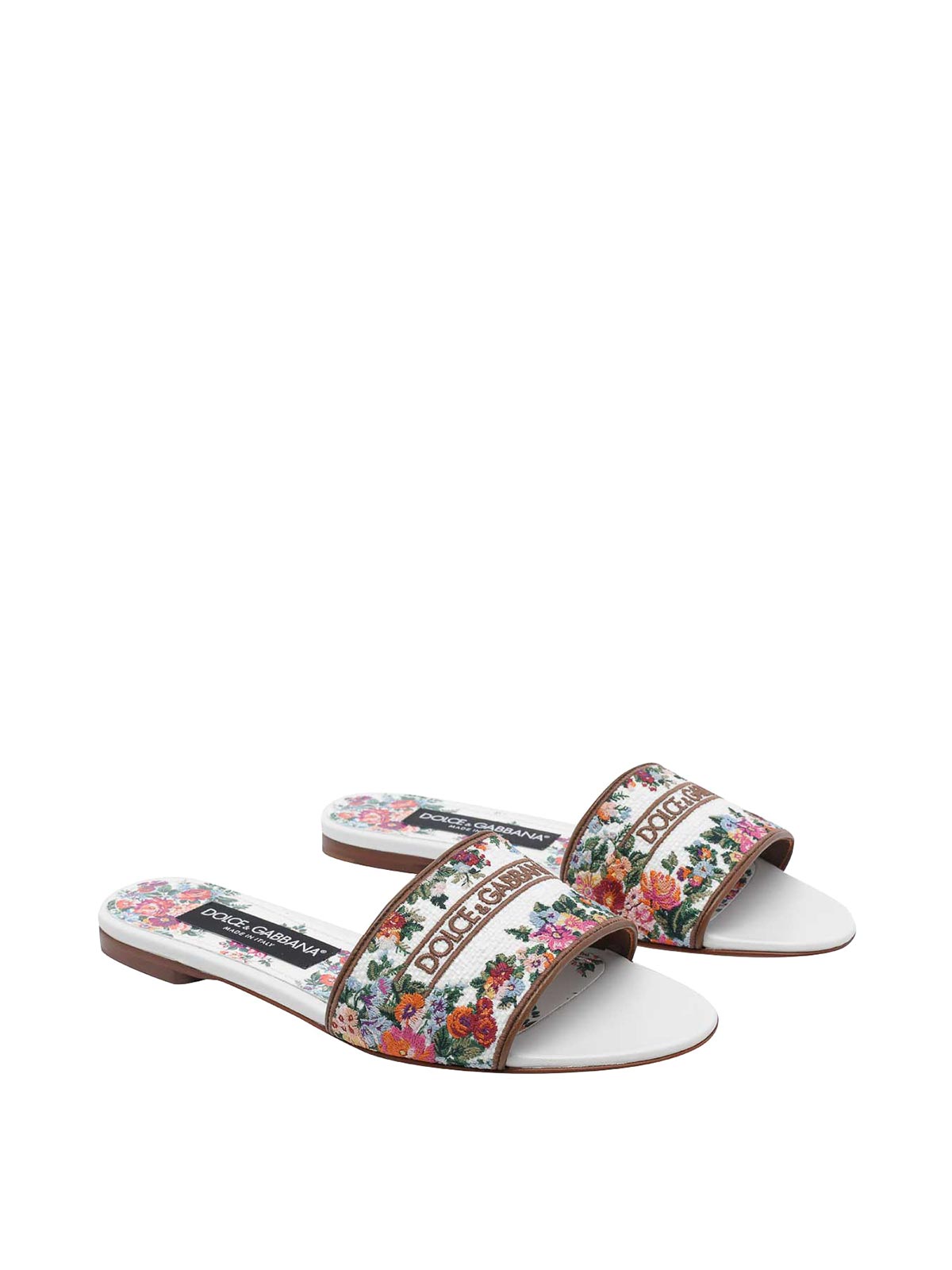 Chaussures plates multicolores Dolce & Gabbana, bout rond ouvert, logo, imprimé floral
