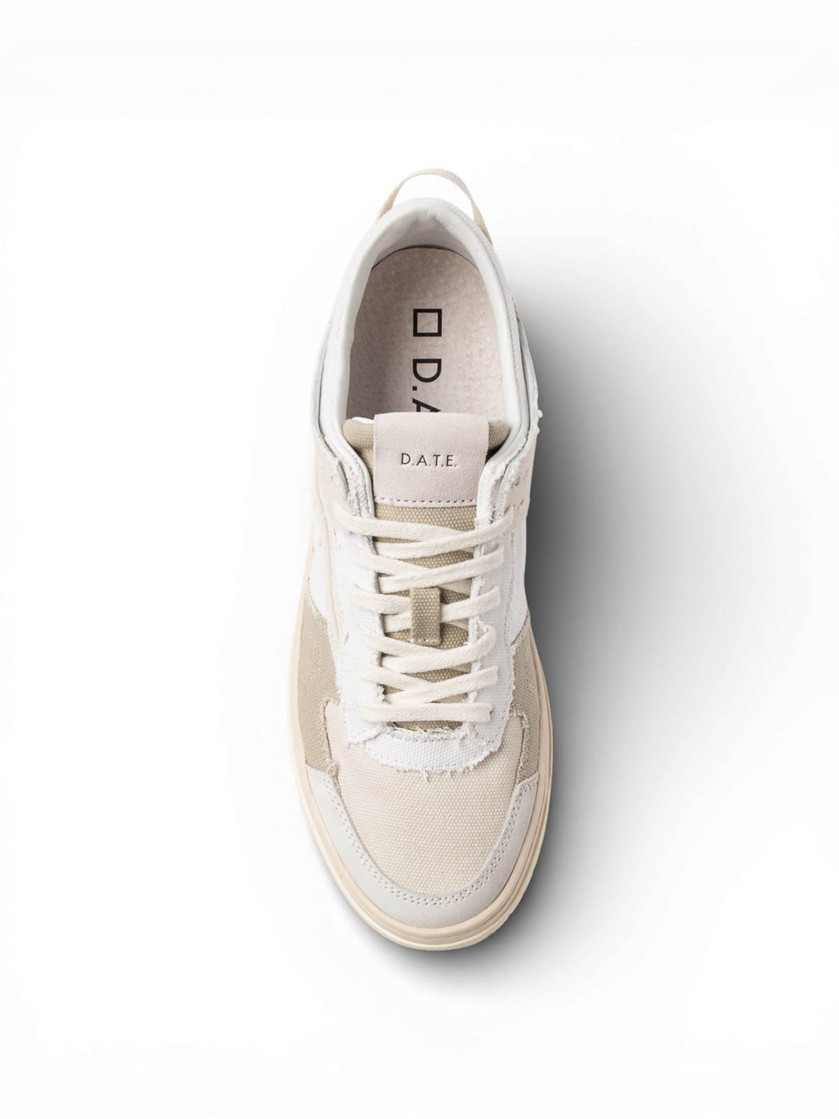 D.a.t.e., tournoi à franges, baskets en lin, baskets basses naturelles en lin aux détails raffinés qui définissent le caractère distinctif du modèle de tournoi à franges. la languette, ornée d'une étiquette en daim avec le logo d.a.t.e. cousue, tandis que le logo carré, brodé sur le côté. Les profils frangés ajoutent une touche matérielle et artisanale au design, tandis que le nom du modèle est brodé dans le dos. la structure interne avec doublure en cuir et en éponge de coton assure confort et respirabilité. La semelle intérieure surélevée contribue à améliorer rembourrage, tandis que la semelle en caoutchouc cousu garantit stabilité et résistance. le logo carré et l'écriture D.A.T.E. sont embossés sur la semelle, complétant l'esthétique du modèle., dessus en lin, étiquette en daim avec logo D.A.T.E. cousue sur la languette, lacets en coton, logo carré brodé sur le côté, profils frangés, nom du modèle brodé au dos, doublure en cuir et coton éponge, intérieur surélevé de 2,5 cm semelle intérieure, semelle en caoutchouc cousue de 2,5 à 3,5 cm de haut, logo carré et inscription D.A.T.E. estampés sur la semelle, coupe classique.
