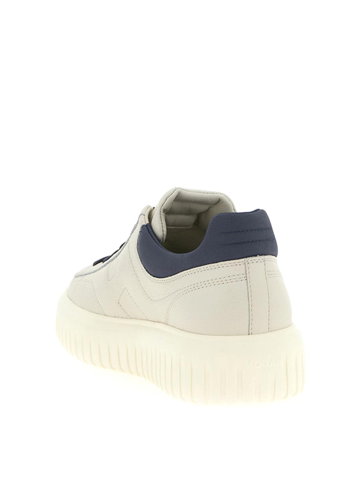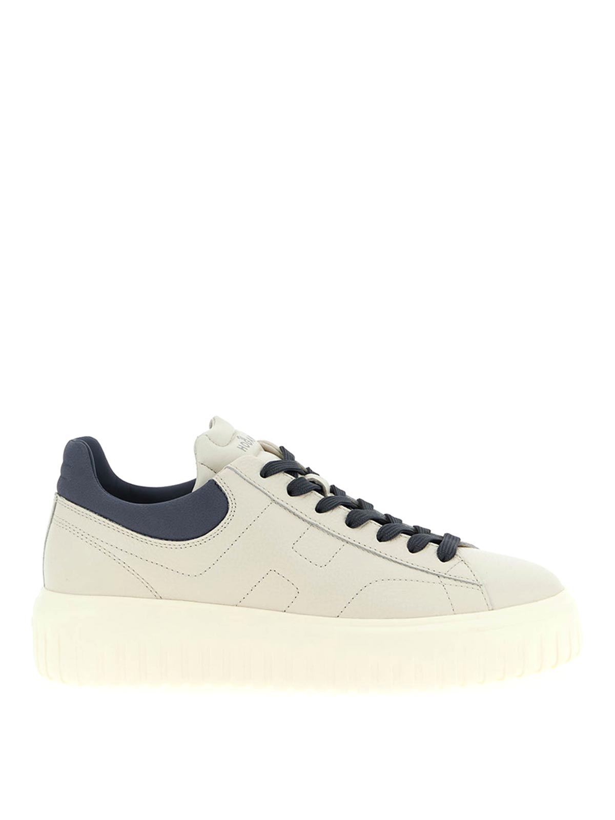 baskets en cuir martelé à rayures en H avec inserts, fermeture à lacets, semelle en caoutchouc surdimensionnée.