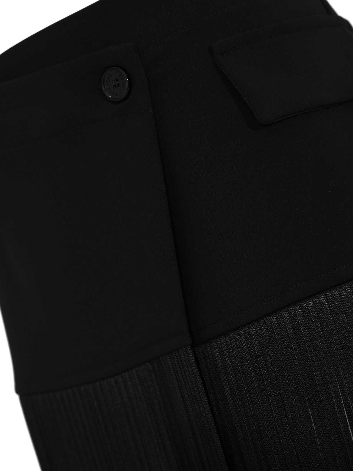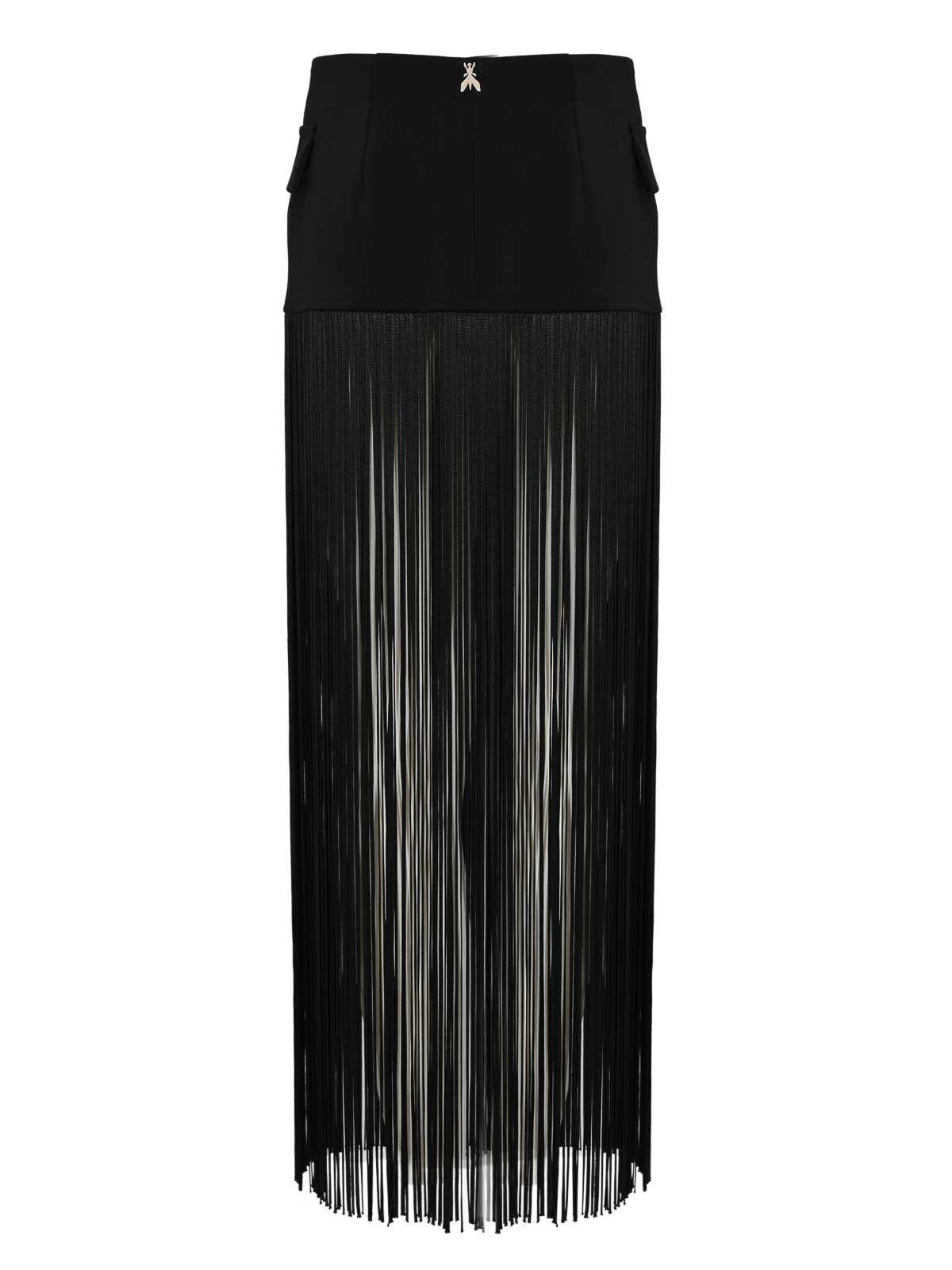 Ceinture pour femme en tissu à franges, Patrizia Pepe, tissu : tissu technique avec application de franges, motif : couleur unie, taille : haute avec bandoulière structurée, fermeture : bouton latéral, poches : passepoil avec rabat, longueur : longue, détails : motif cache-cœur avec panneau superposé, partie inférieure entièrement décorée de longues franges, logo en forme de braguette métallique au dos, doublure : non, coupe : normale