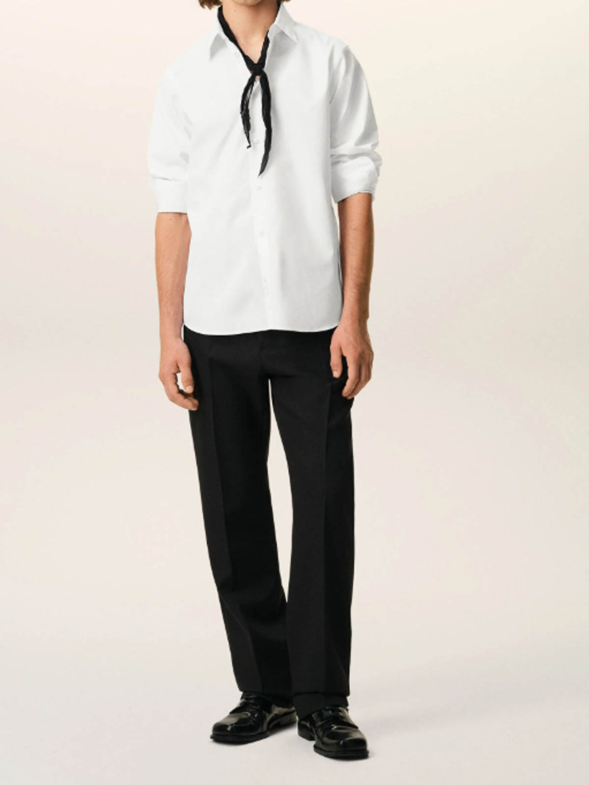 Coupe classique de créateur, col de chemise classique, poignets boutonnés, manches longues