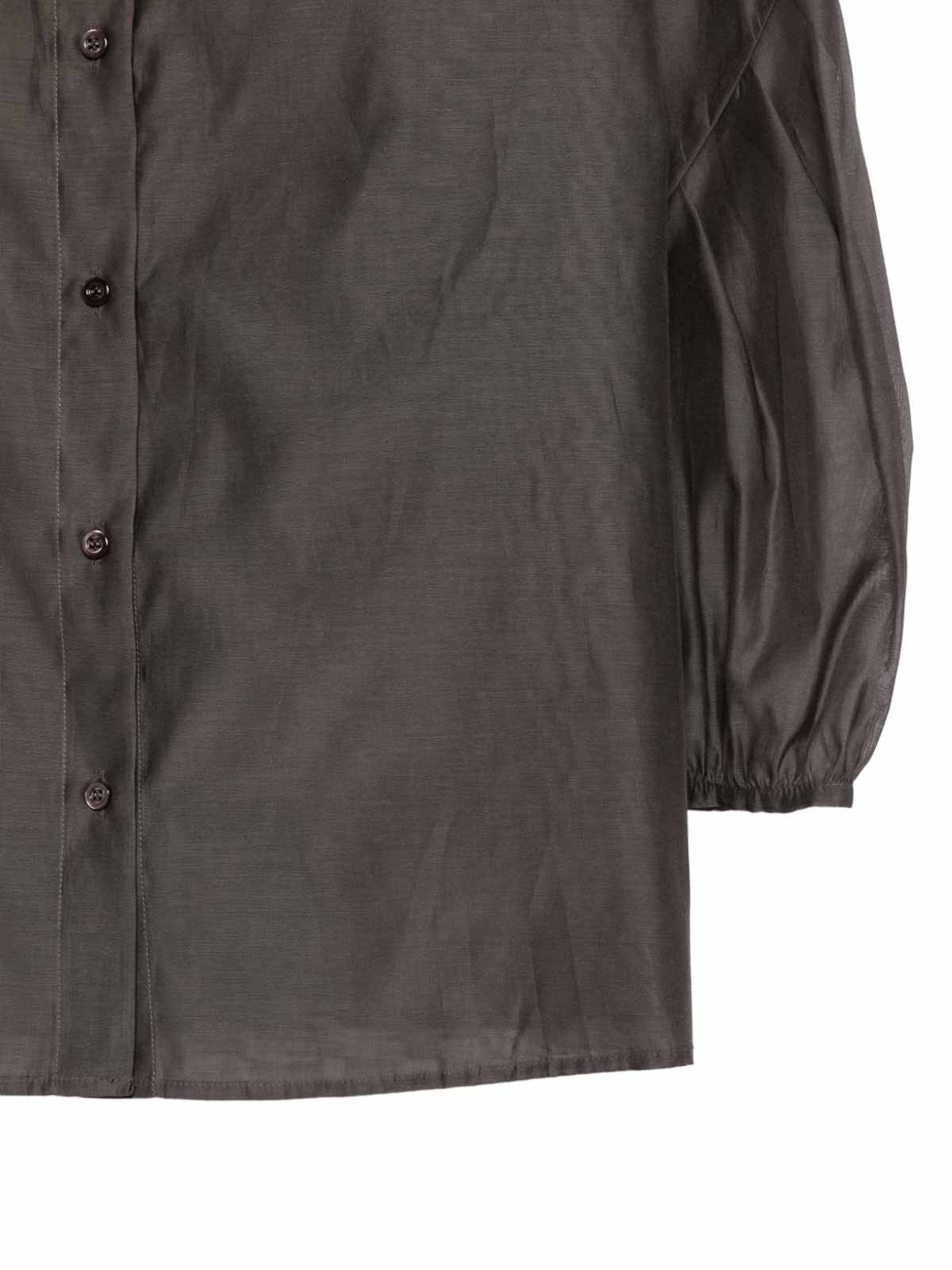 Chemise marron à manches bouffantes de la marque Peserico, élégante et féminine. Idéale pour les tenues sophistiquées et contemporaines, confectionnée dans un tissu de haute qualité aux détails raffinés.
