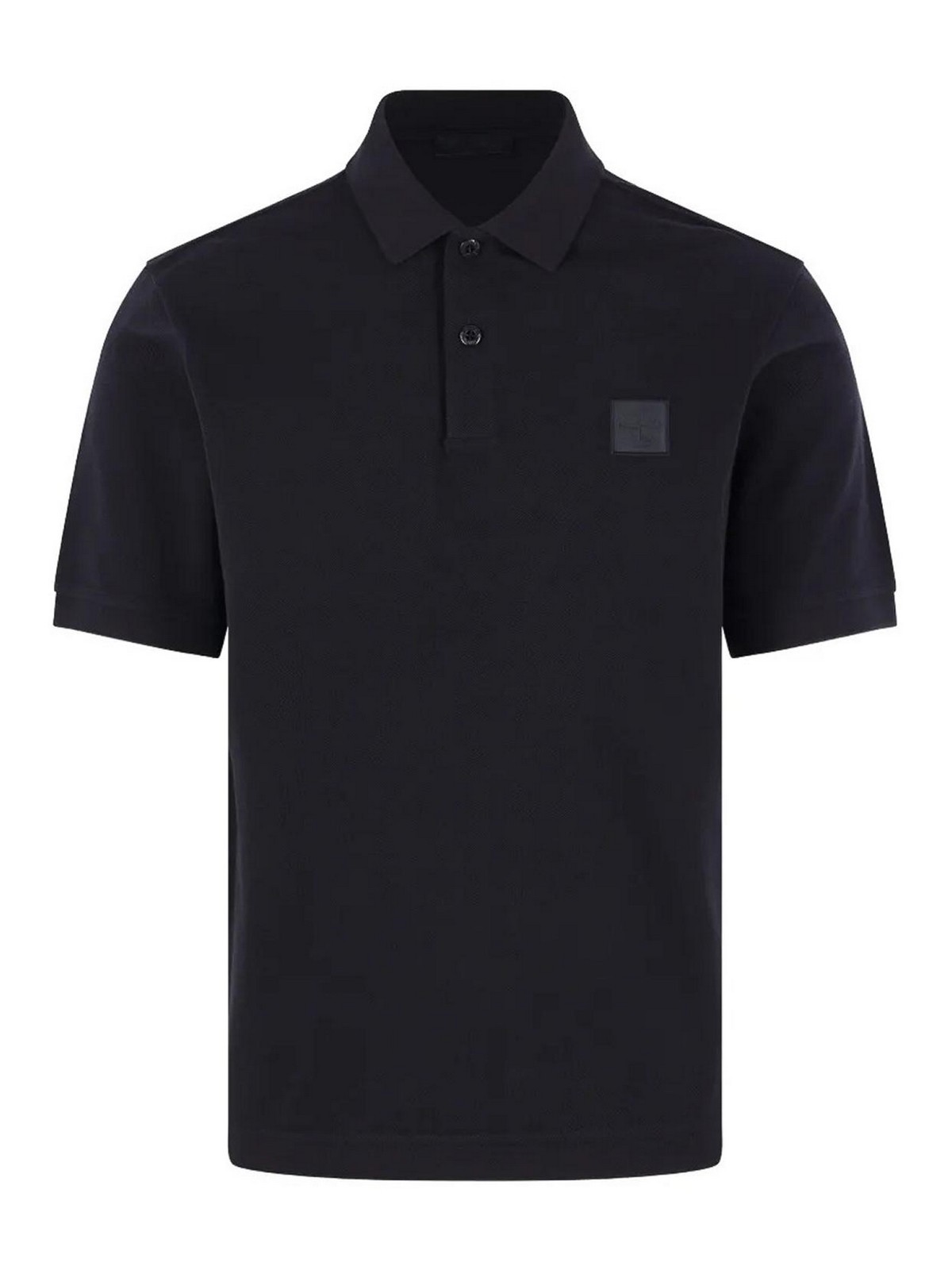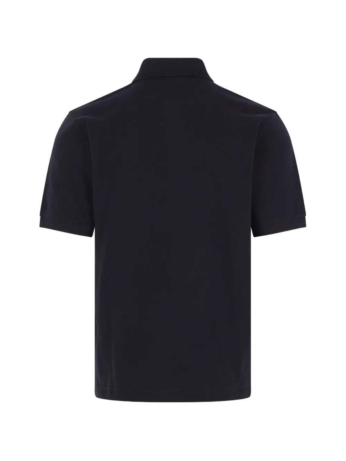 Chemise classique de créateur, col à deux boutons, fentes latérales, écusson logo sur la poitrine, manches courtes
