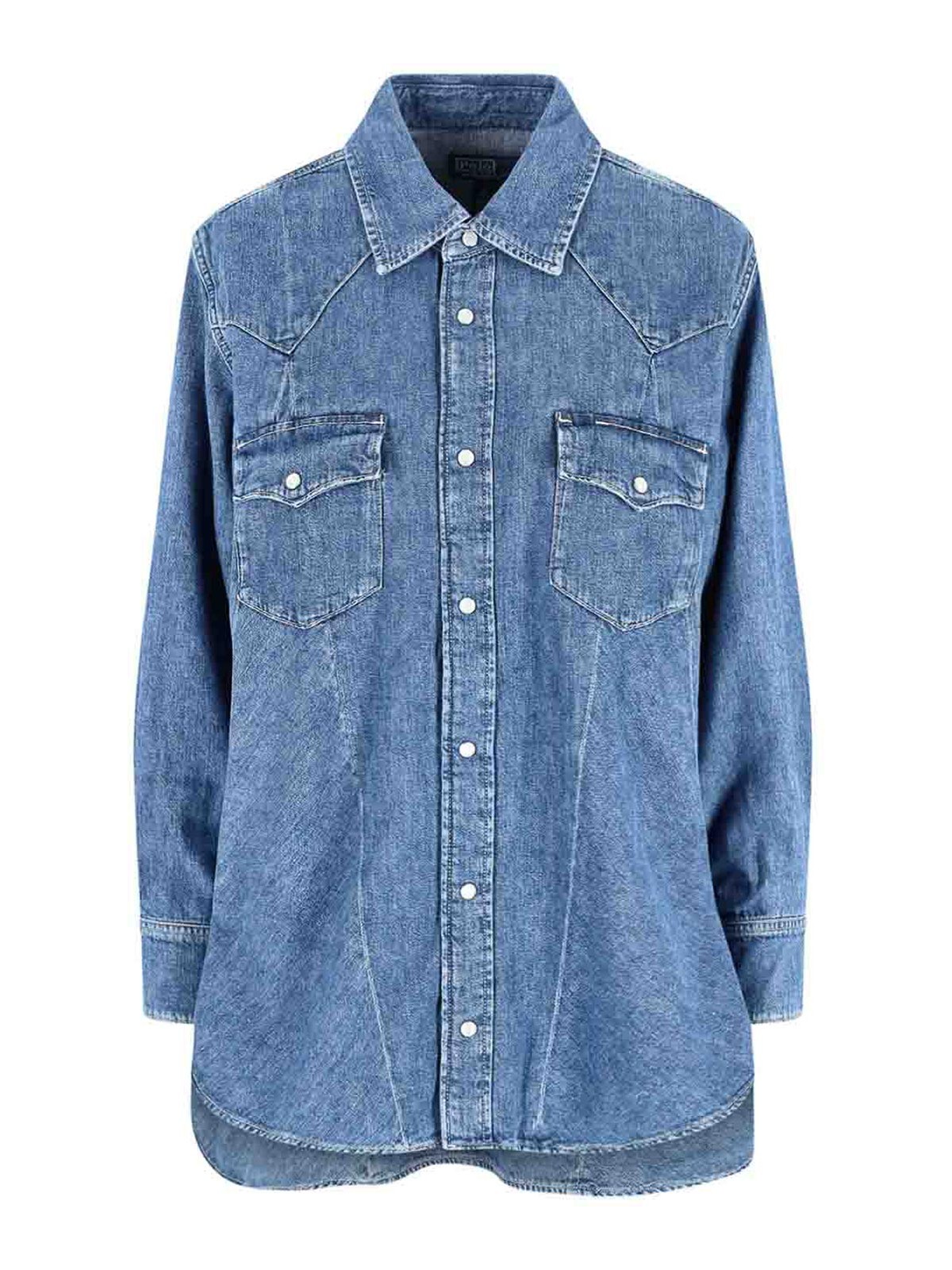 Chemise en jean Polo Ralph Lauren Western, en coton mélangé bleu, col classique, fermeture boutonnée, épaules tombantes, manches longues, deux poches à rabat boutonnées sur le devant, poignets boutonnés, ourlet incurvé.