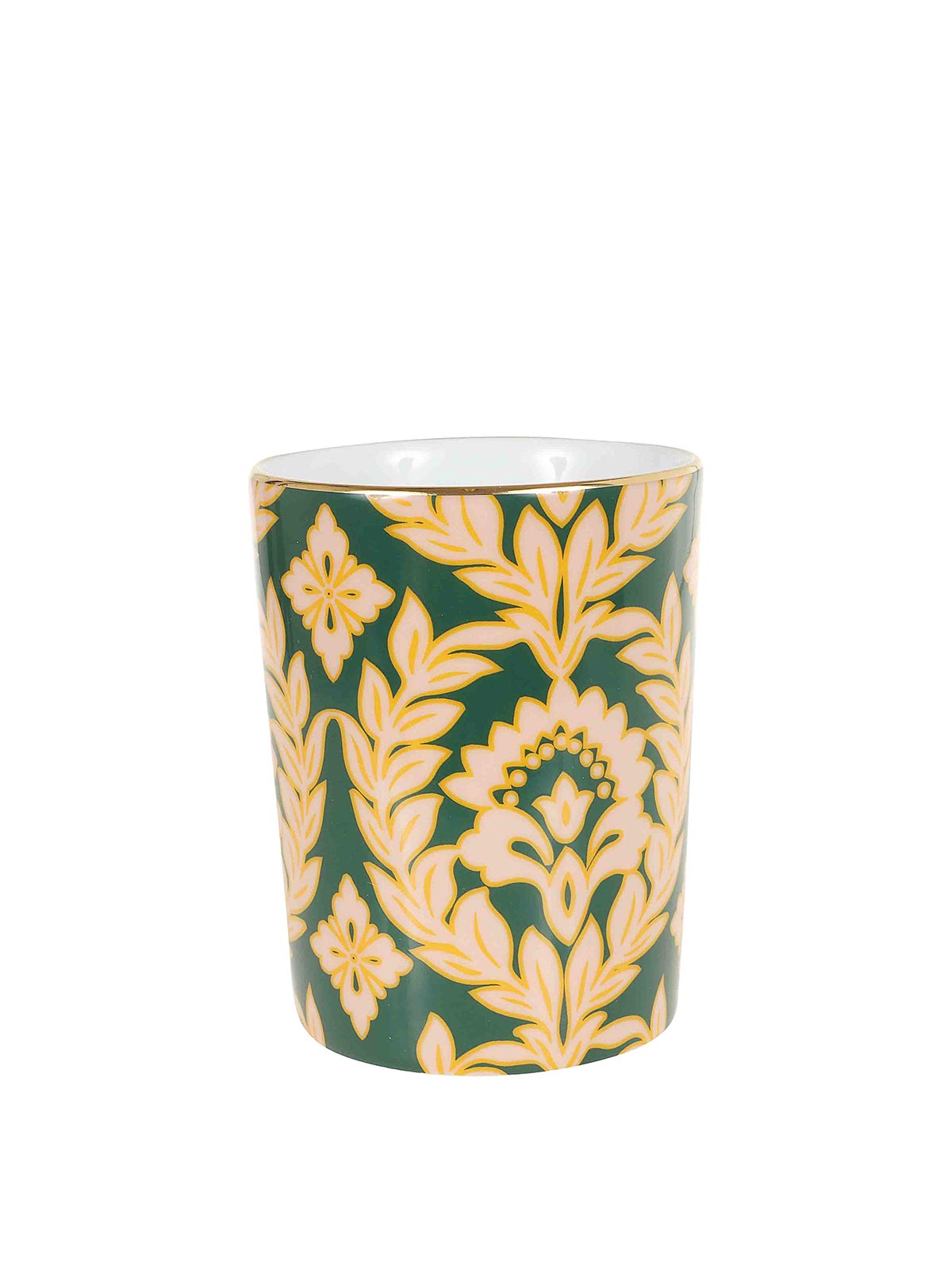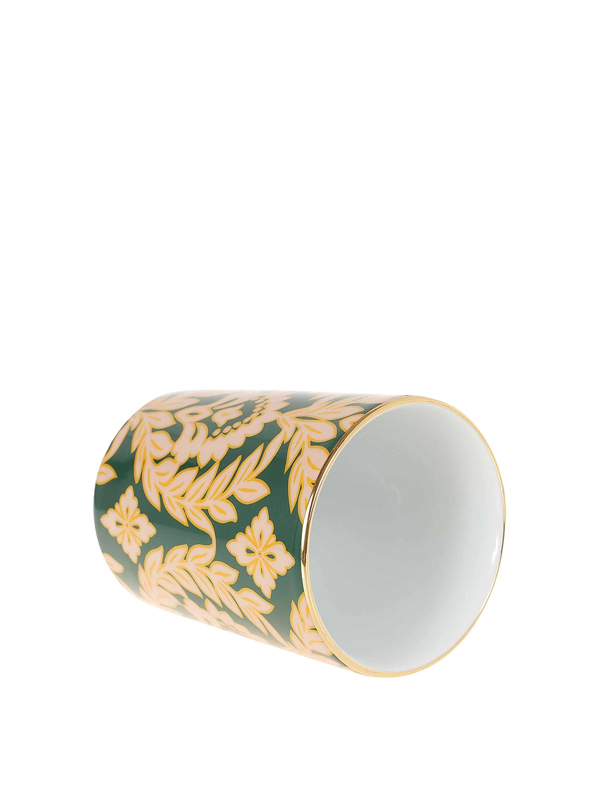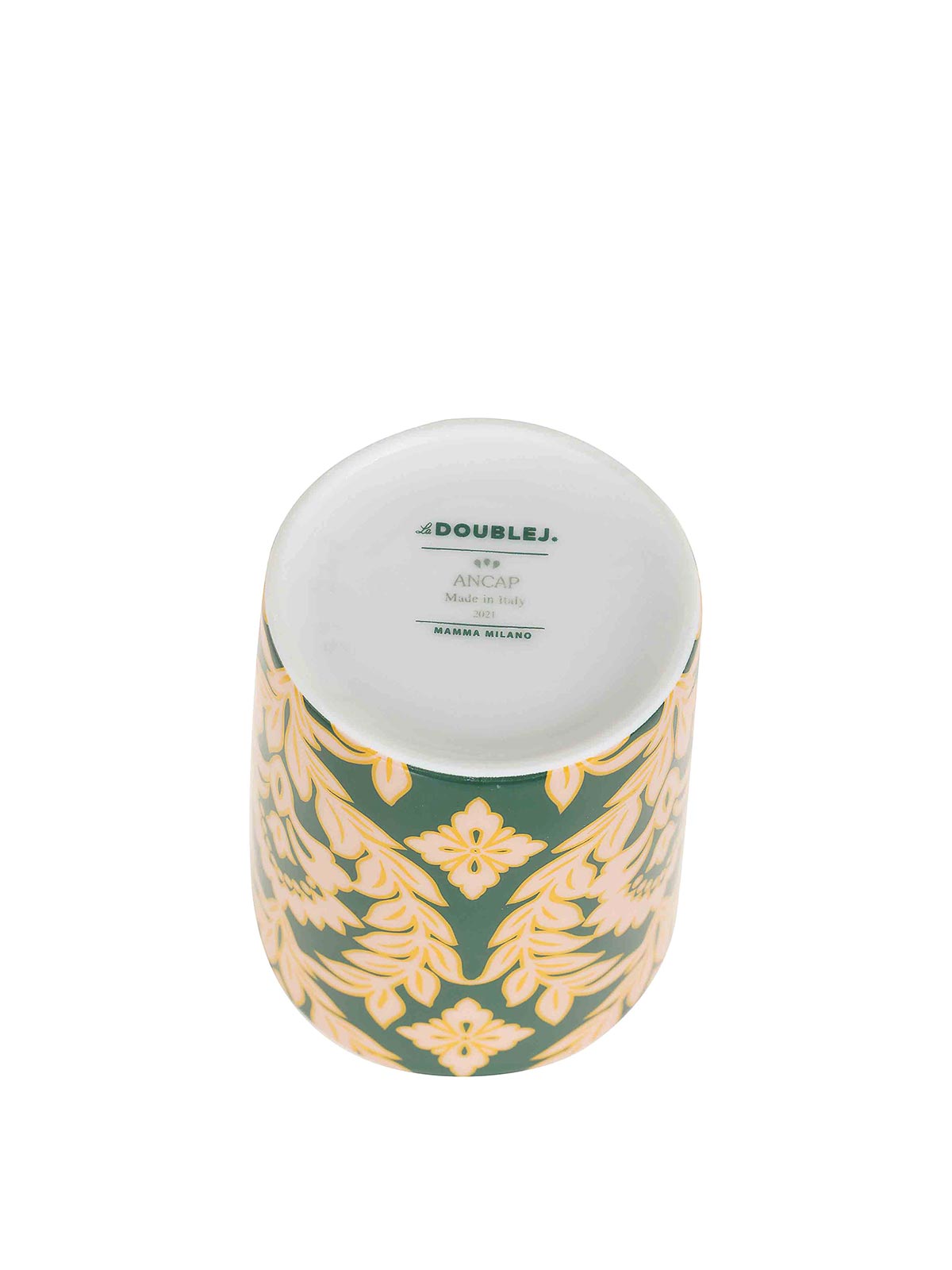 Mug en porcelaine italienne de la plus haute qualité avec des décorations dorées de la Doublej, orné d'un motif de guirlande verte inspiré des fleurs cultivées sur les terrasses emblématiques de Milan.