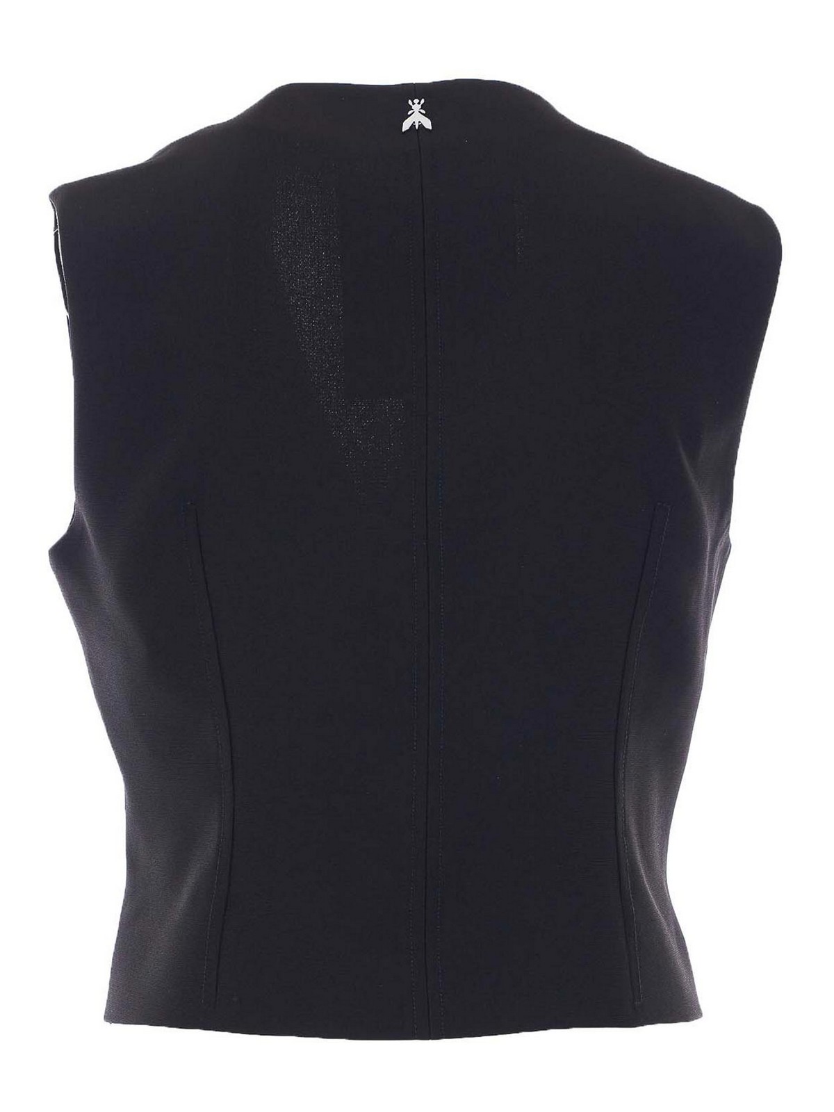 Gilet noir Patrizia Pepe avec fermeture boutonnée sur le devant, sans manches, col en V