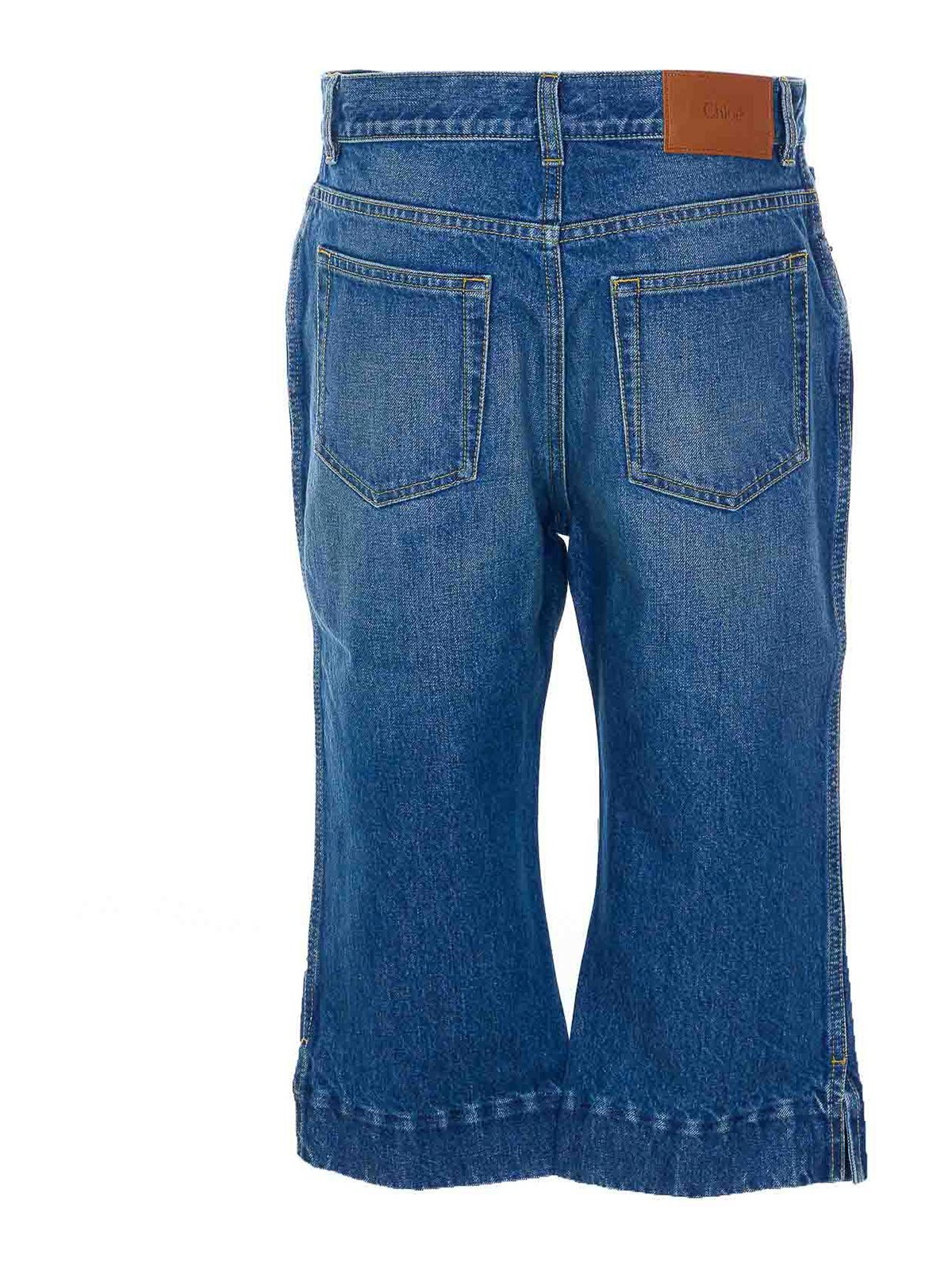 Jean Chlo Denim DS03 avec bouton frontal et fermeture zippée, 5 poches, logo patch au dos, short en jean