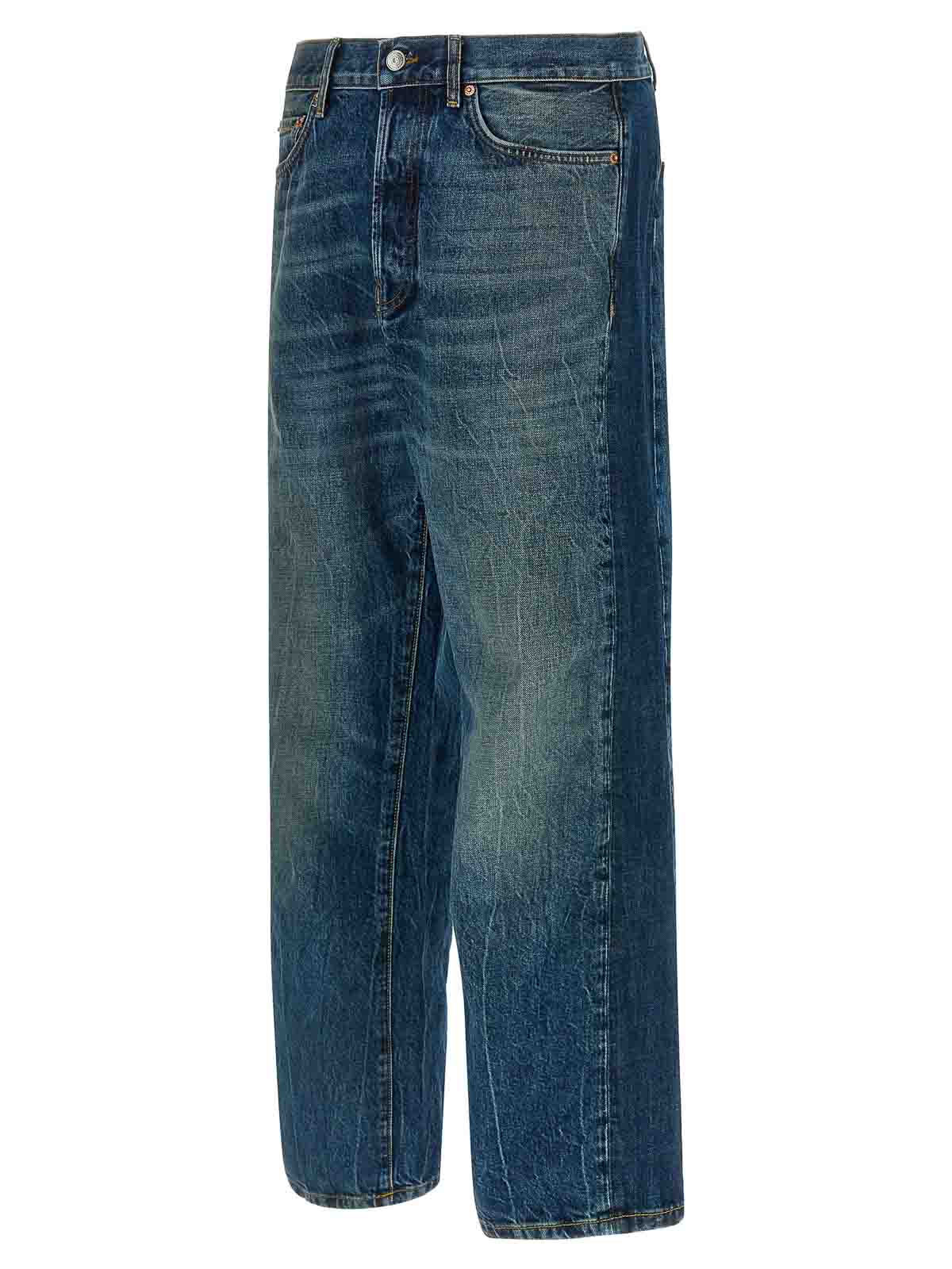 Jean en jean en coton délavé à la pierre à effet usé Curtis avec inserts latéraux, coutures contrastantes, fermeture boutonnée sur le devant, cinq poches, jambe droite, étiquette logo au dos.