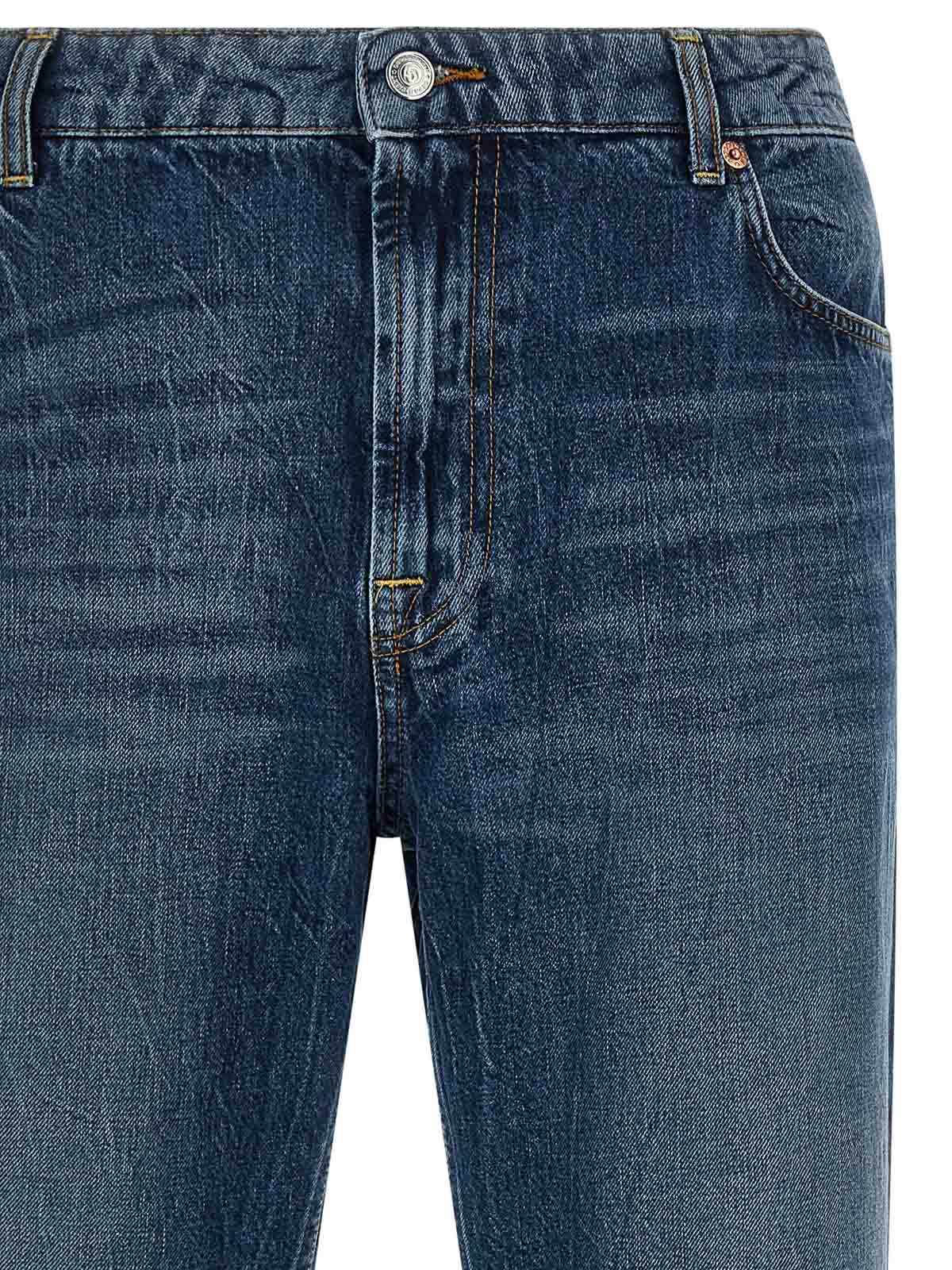jean en jean de coton délavé à la pierre Stones avec coutures contrastantes, taille normale, fermeture zippée et boutonnée sur le devant, cinq poches, jambe droite, étiquette logo au dos.