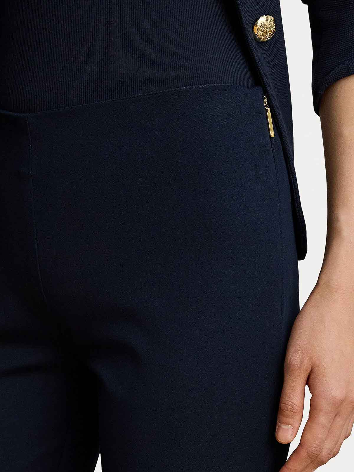 Coupe ajustée en mélange de coton stretch, taille mi-longue élastiquée, jusqu'à la cheville et fermeture à glissière latérale dissimulée.