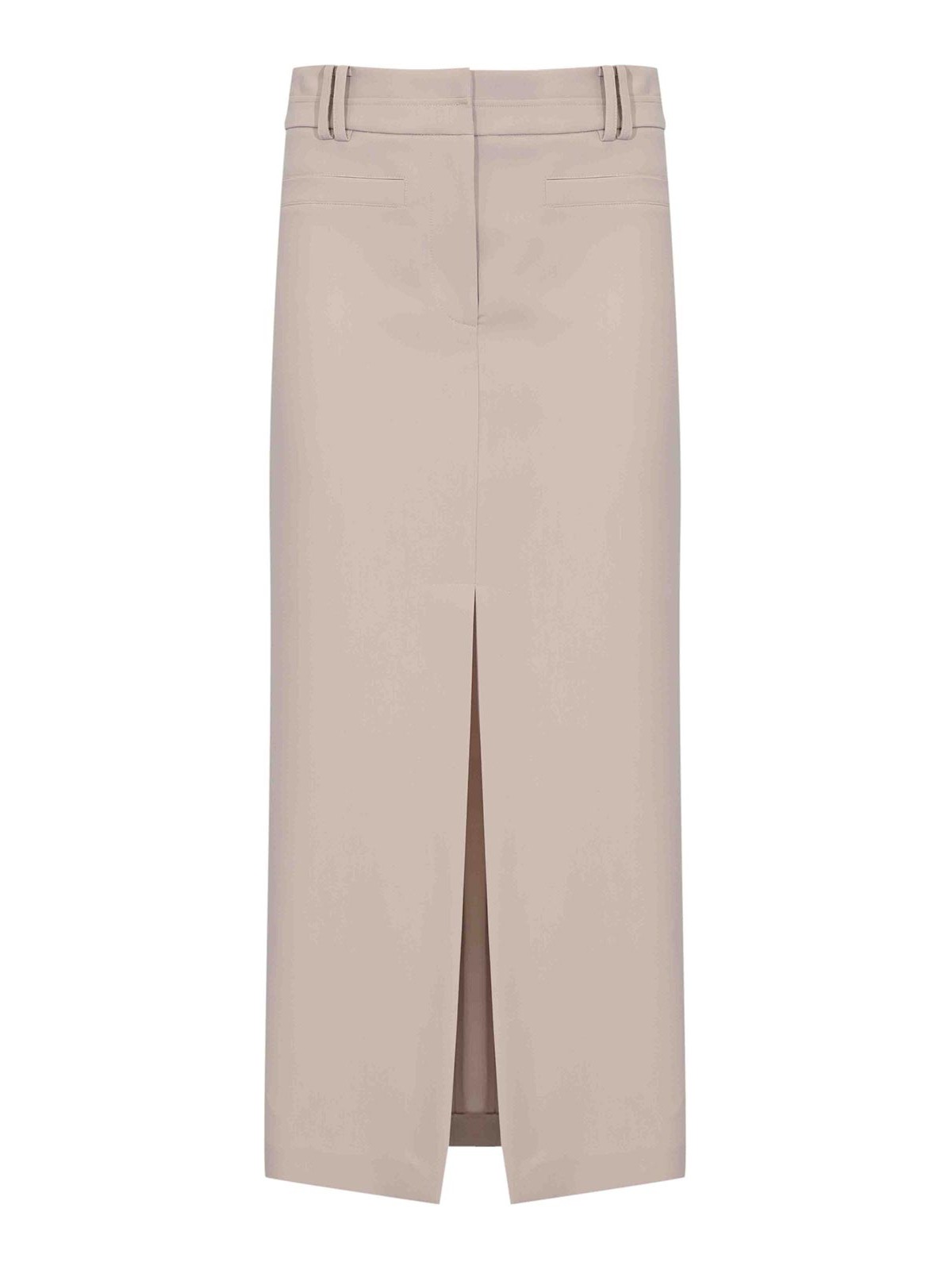 Jupe midi pour femme en gabardine de viscose mélangée, Patrizia Pepe, tissu : gabardine de viscose mélangée, motif : couleur unie, taille : haute avec passants de ceinture, fermeture : fermeture éclair avec crochet caché, poches : passepoilée au dos, longueur : midi, détails : fente centrale sur le devant, coutures ajustées, logo en forme de braguette métallique appliqué dans le dos, doublure : non, coupe : normale