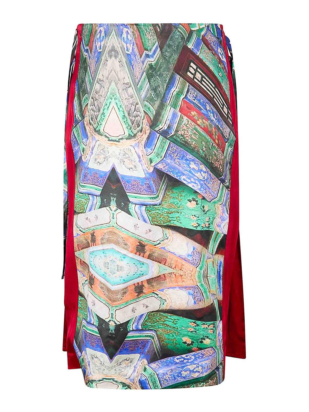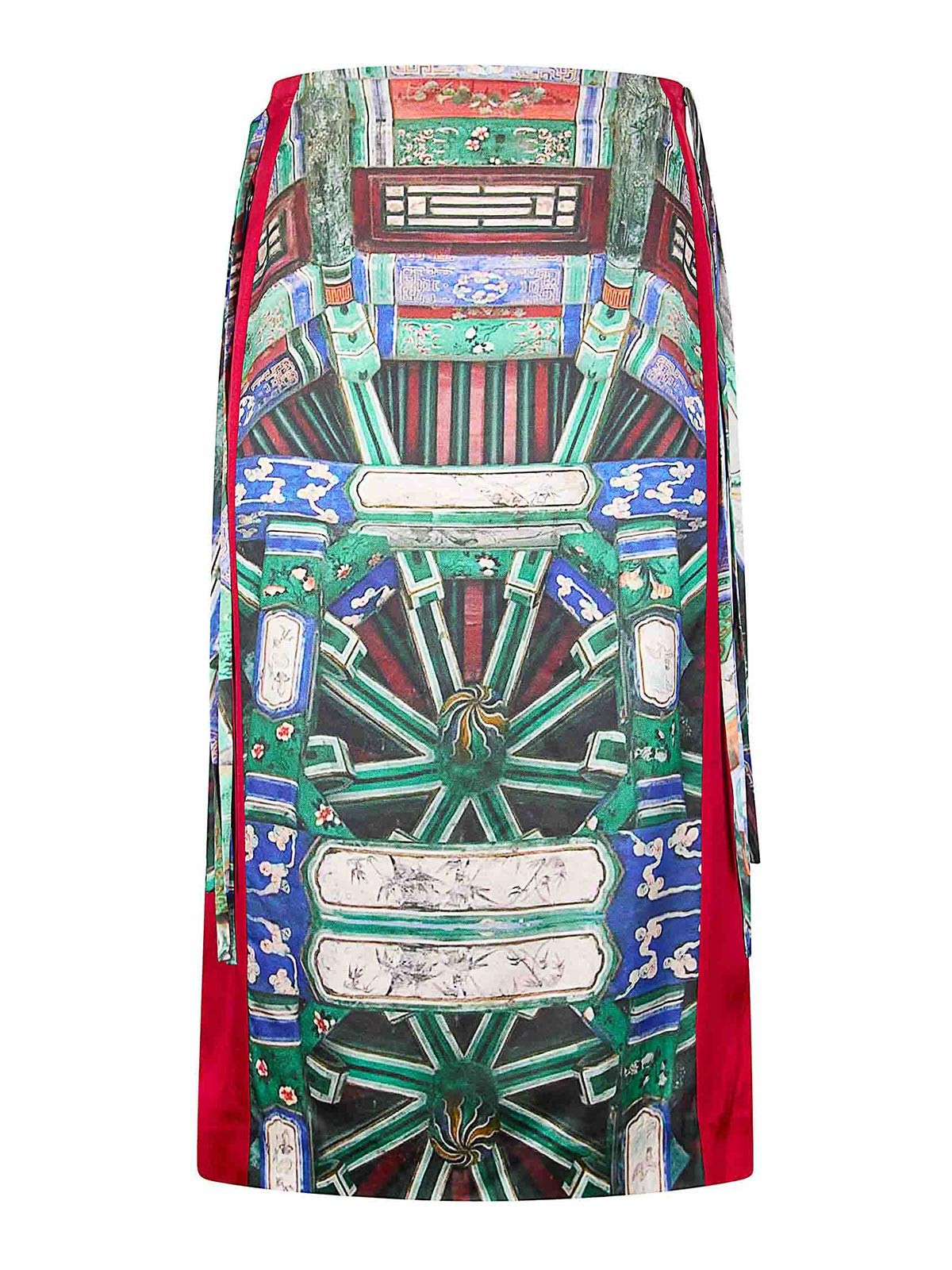 Jupe à imprimé effet vintage, longueur genou, fermeture zippée latérale, lacets.