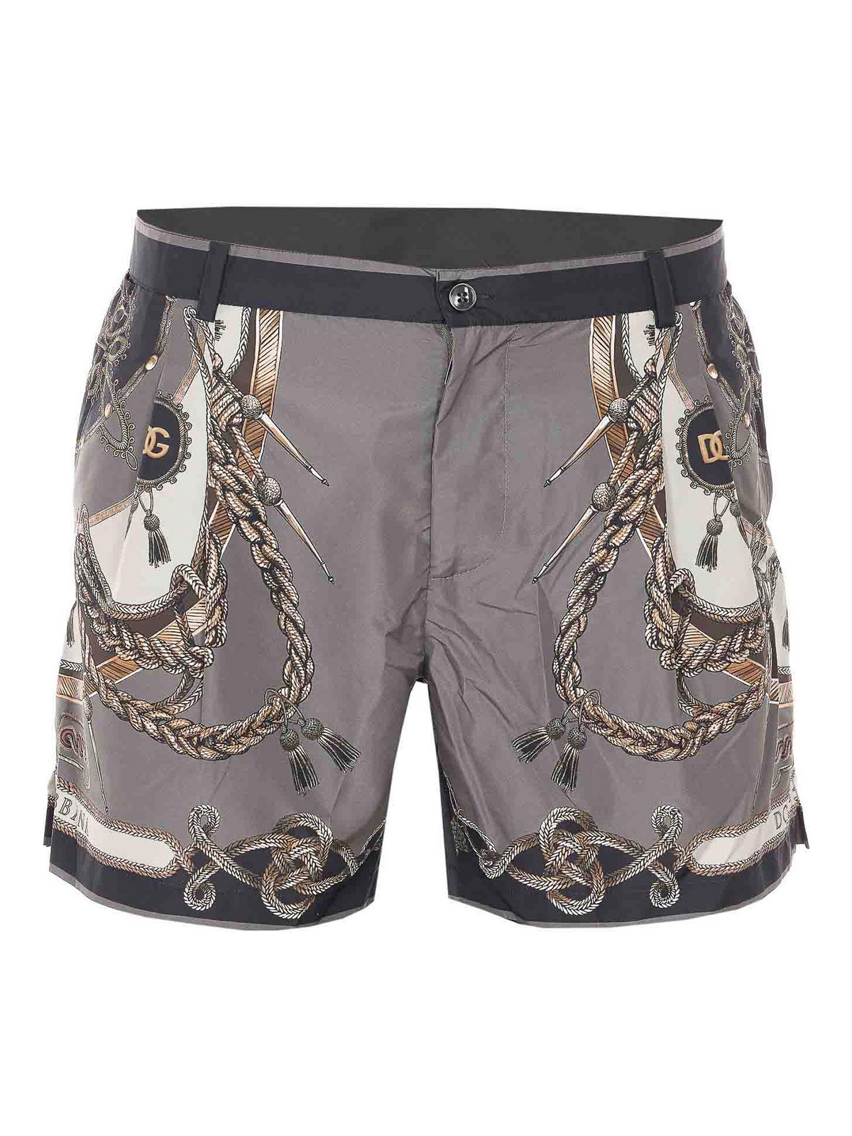 Maillot de bain vert Dolce & Gabbana, fermeture zippée et boutonnée, imprimé intégral, poches latérales