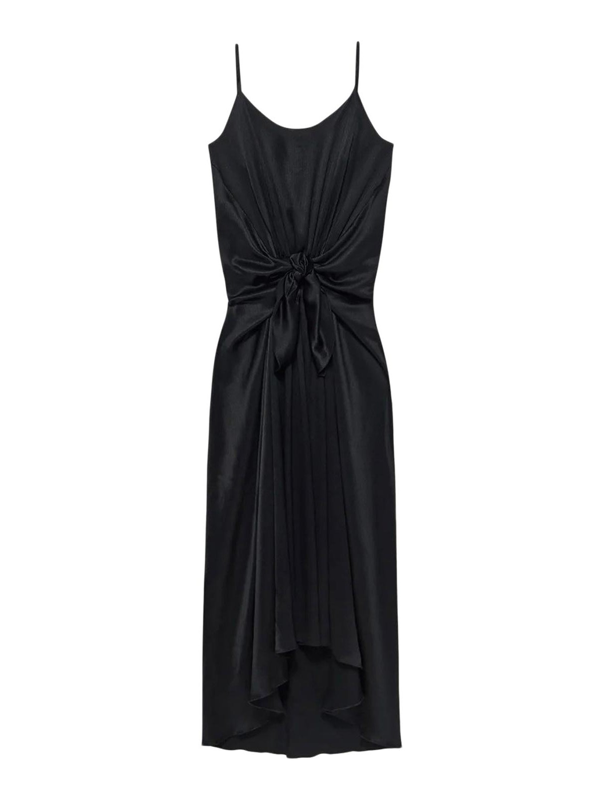 robe longue en soie froissée noire, bretelles, dos plongeant, détail noué sur le devant, coupe décontractée, ourlet abaissé, 100 % soie, couleur : noir