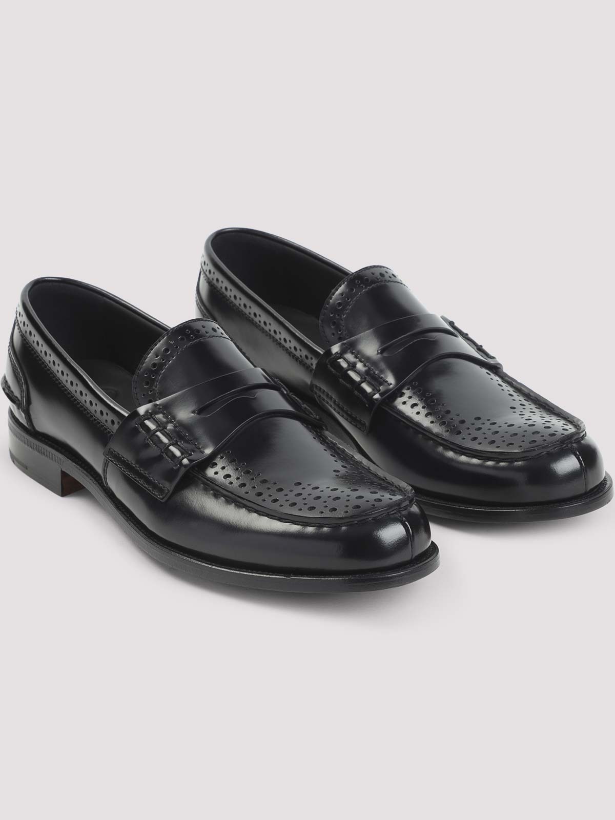 Mocassins Church`s Robin en cuir de veau noir, fabriqués en cuir de veau brossé noir, dotés d'un bout rond, d'un motif brogue sur l'empeigne, d'une lanière, d'un talon renforcé, d'une doublure et d'une semelle intérieure en cuir, ainsi que d'une semelle extérieure en cuir.