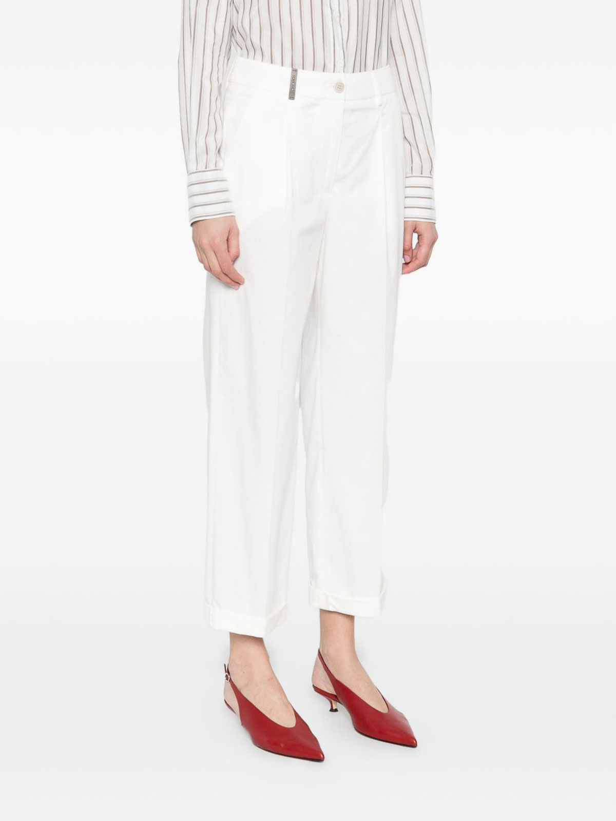 Pantalon blanc élégant de la marque Peserico, parfait pour les tenues formelles et sophistiquées. lignes épurées et tissu de haute qualité pour un style féminin raffiné et contemporain.