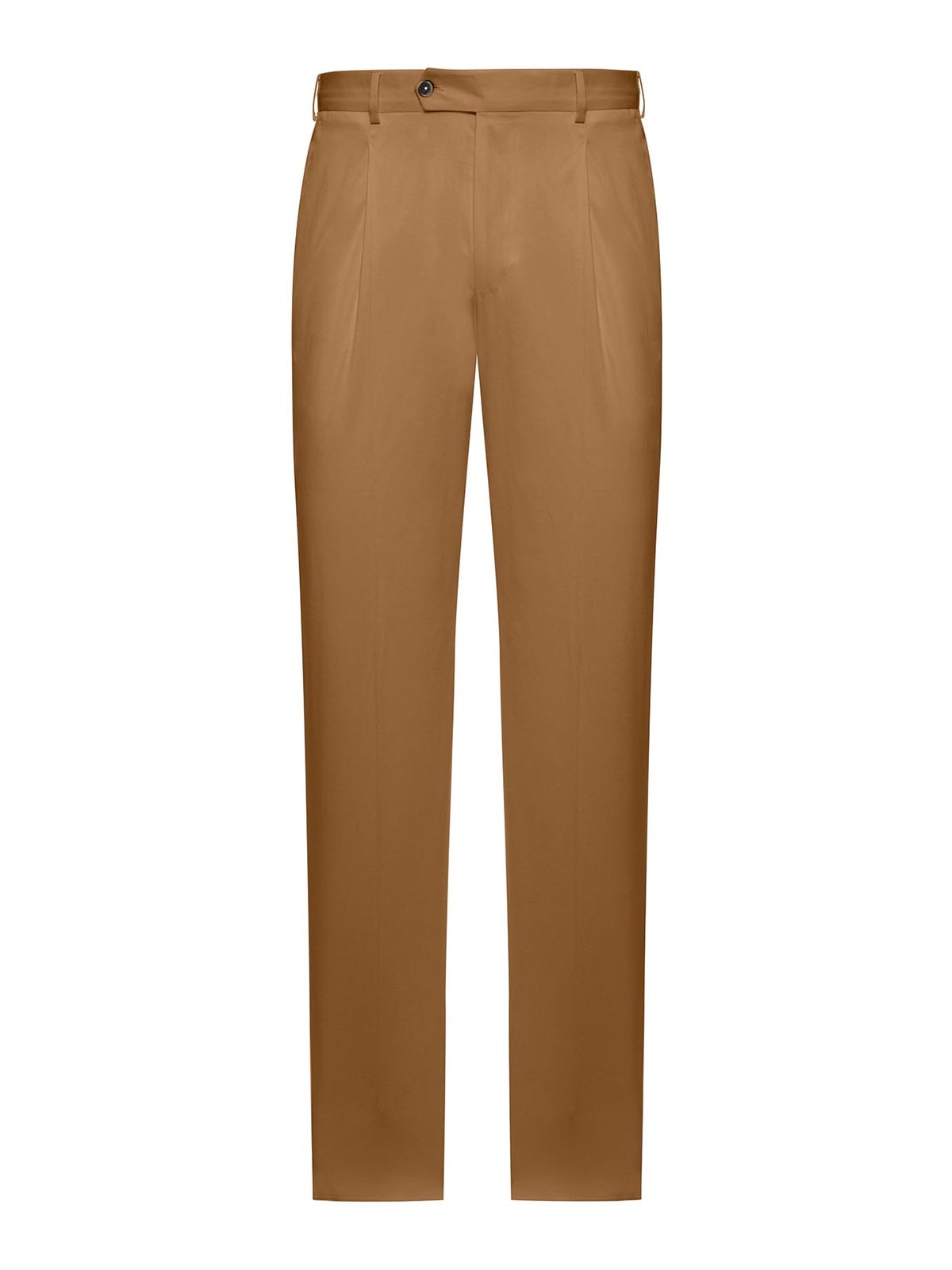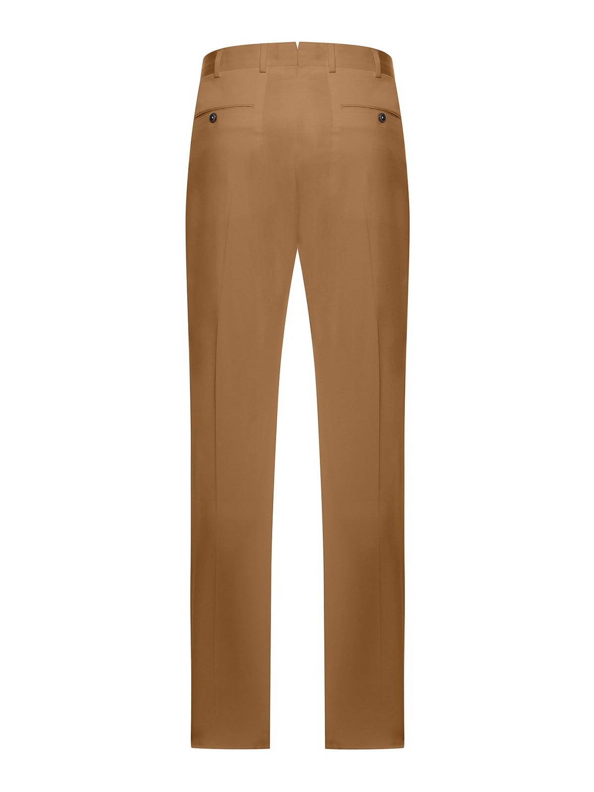 passants de ceinture à la taille, bouton sur le devant et fermeture à glissière dissimulée, pinces sur le devant, poches latérales inclinées, poches arrière passepoilées avec bouton, pli pressé le long de la jambe, jambe droite, coupe classique, mélange de coton et de soie, couleur : noisette
