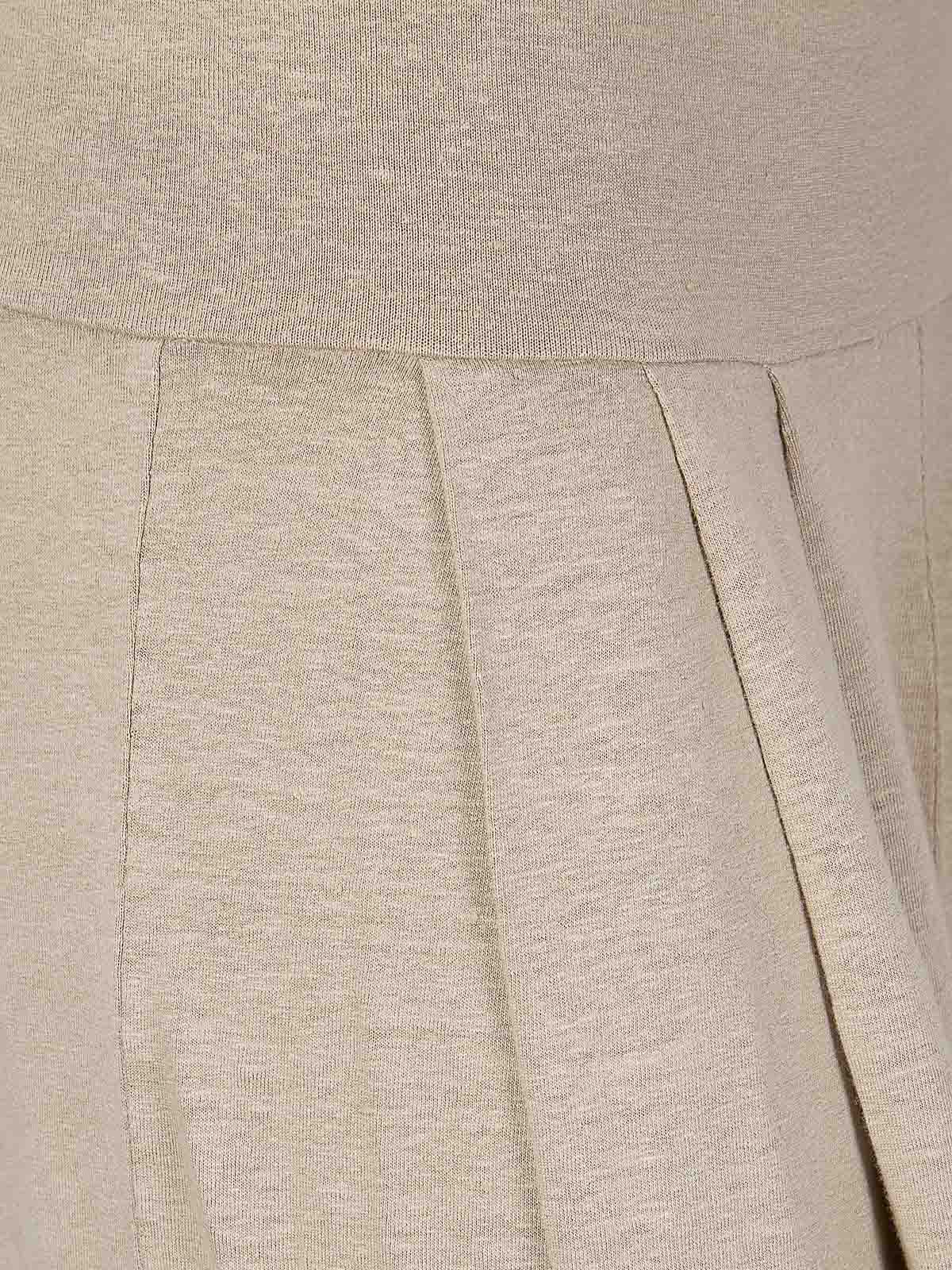Pantalon en laine mélangée douce avec taille haute à bandes, jambe large, tissu léger.