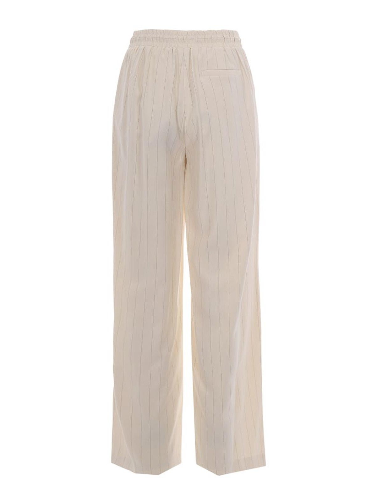 Le pantalon beige clair pour femme de Liu Jo allie confort et sophistication. Doté d'une coupe large et d'un cordon de serrage à la taille, il offre une coupe décontractée et raffinée. Le subtil effet à fines rayures grises ajoute une touche ajustée et contemporaine, ce qui le rend parfait pour les tenues décontractées et chics ou pour réinterpréter un style formel de manière moderne.