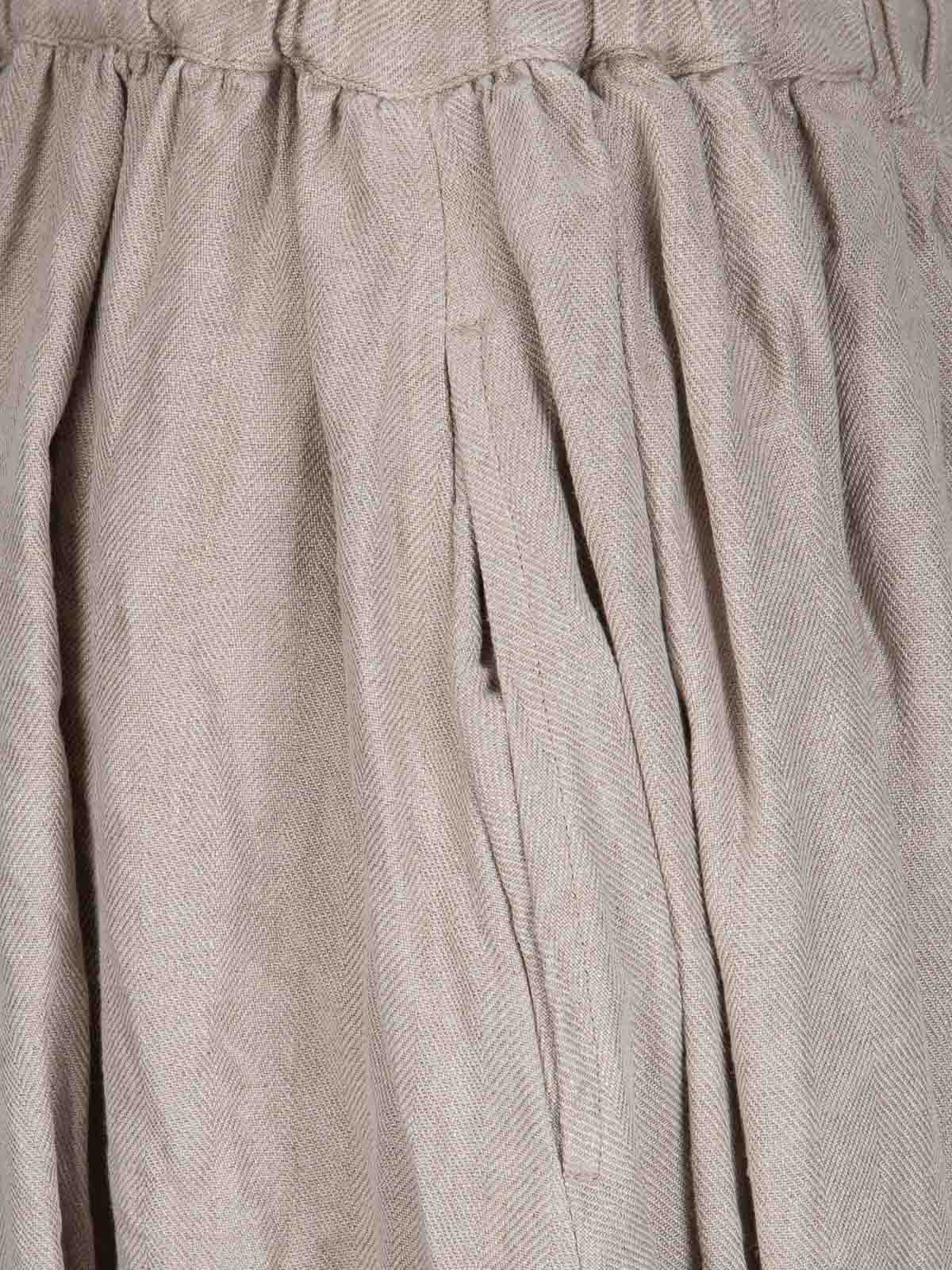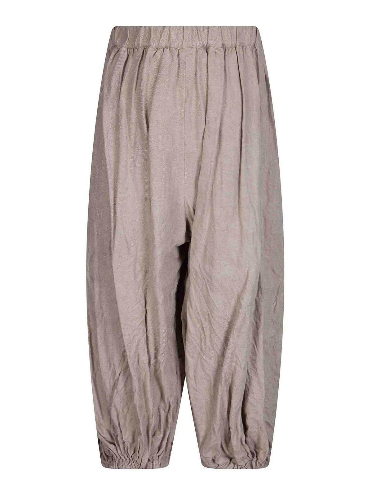 Pantalon en lin avec entrejambe bas, taille élastiquée, tissu épais et rugueux.