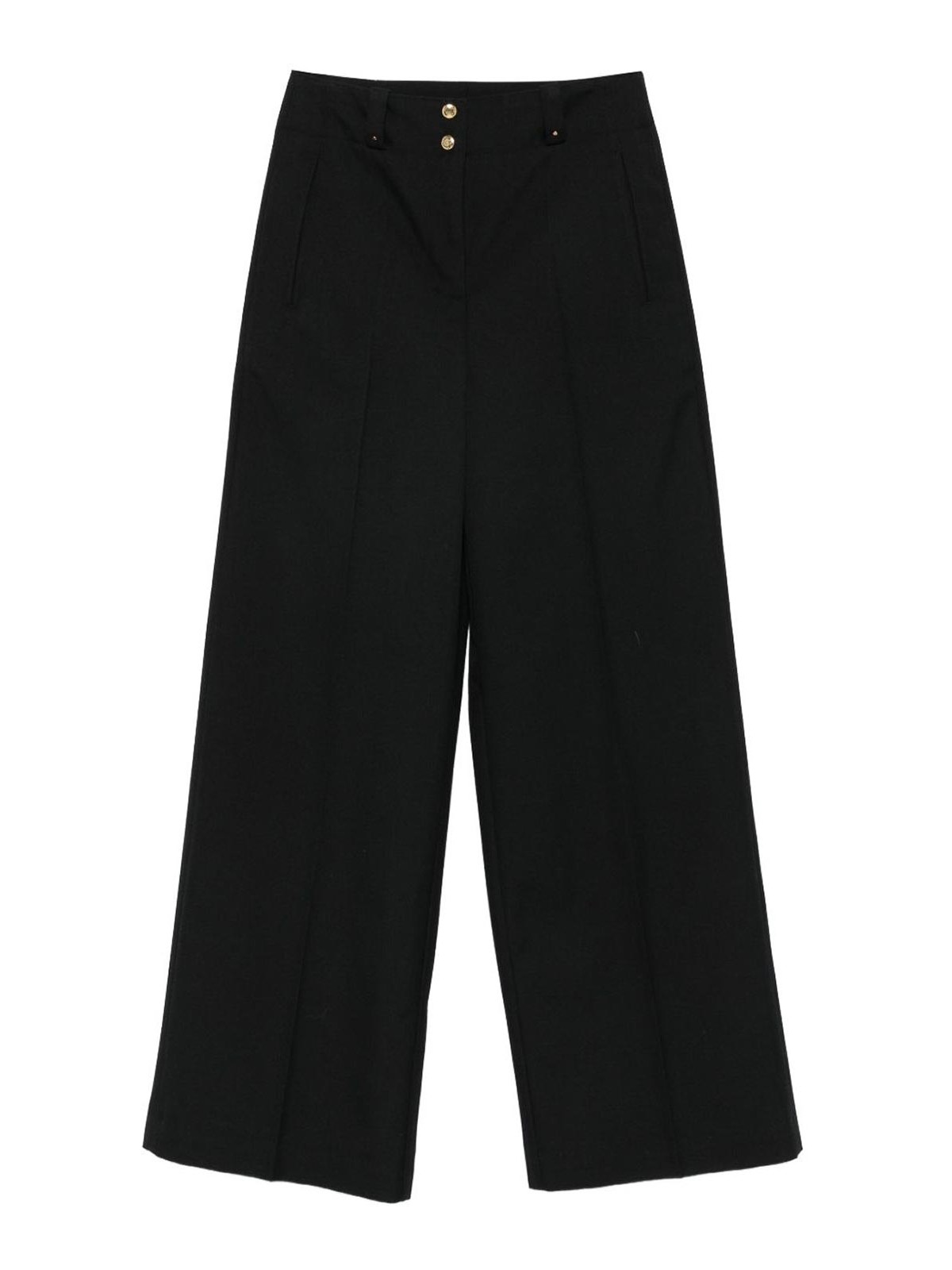 Pantalon plissé noir à jambes larges avec poches latérales.