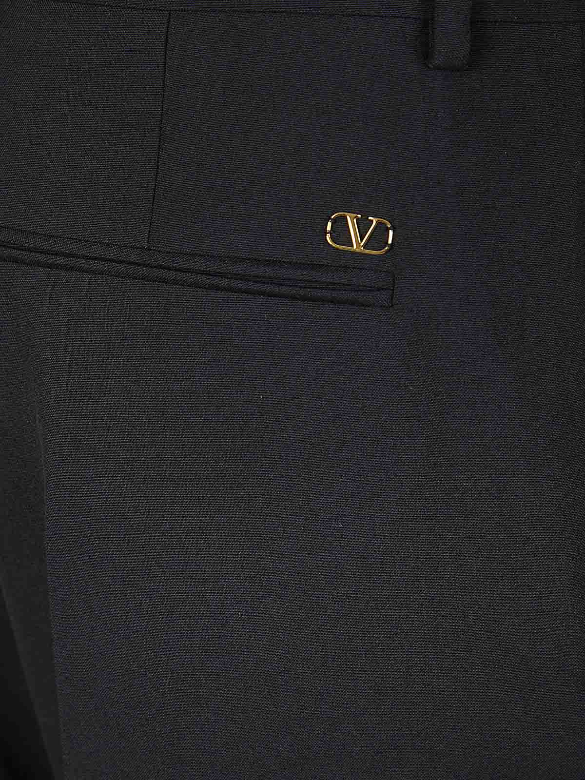 Pantalon en laine Valentino Garavan. Fermeture à glissière et crochet cachés, passants de ceinture, deux poches latérales et deux poches arrière, coupe ajustée. Caractérisé par un revers et un vlogo appliqués sur la poche arrière.